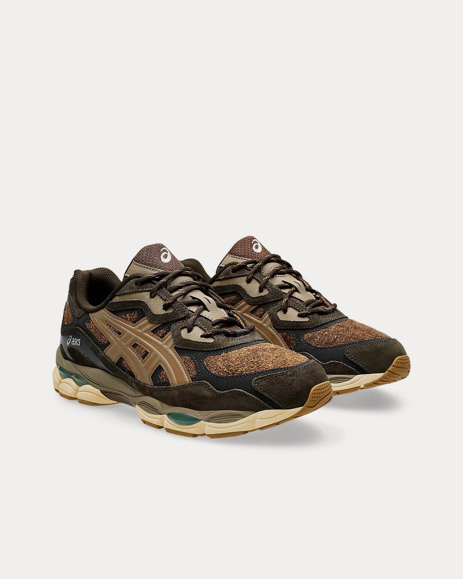 The unisex AsicsGel-NYC low top sneakers in brown storm and tan presidio are inspired by heritage and modern performance running styles with an upper is inspired by the GEL-NIMBUS 3 and MC-PLUS V shoes and rearfoot and forefoot GEL™ technology for comfort in everyday scenarios.