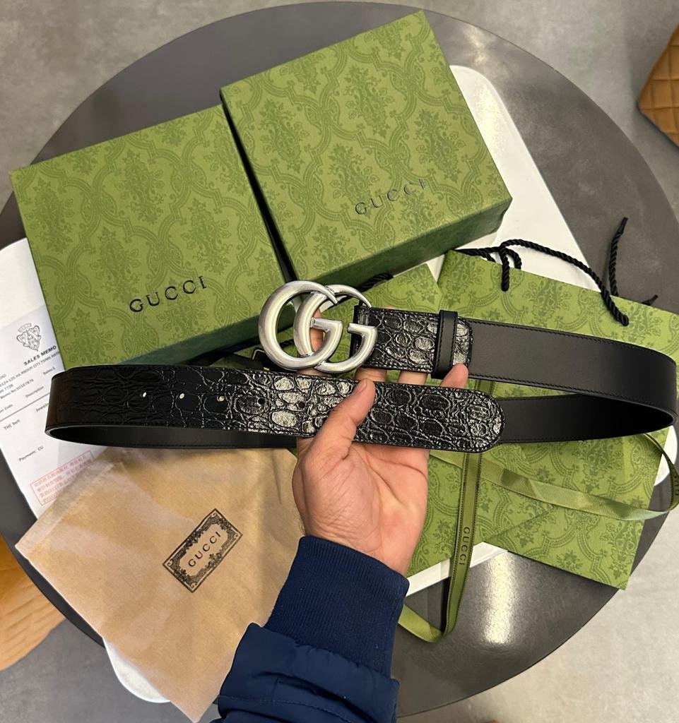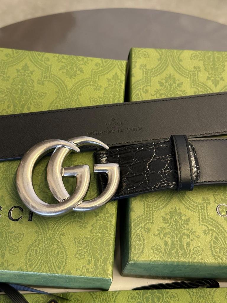 GUCCI || Ceinture en crocodile avec boucle double G