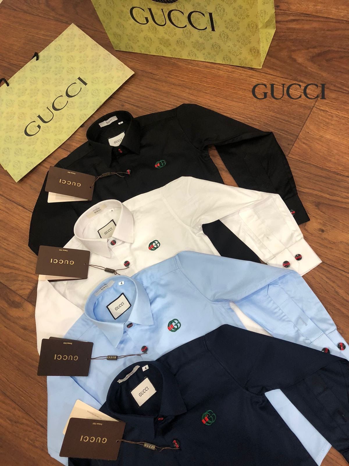 Cette chemise GUCCI de qualité supérieure, ornée d’un logo en relief, est parfaite pour les enfants. Fabriquée avec des matériaux de la plus haute qualité, elle allie durabilité et style. Offrez le meilleur à votre enfant avec GUCCI.
