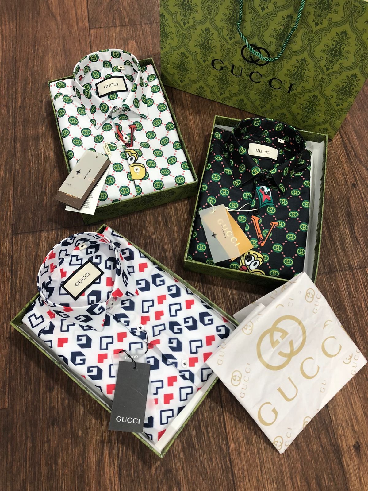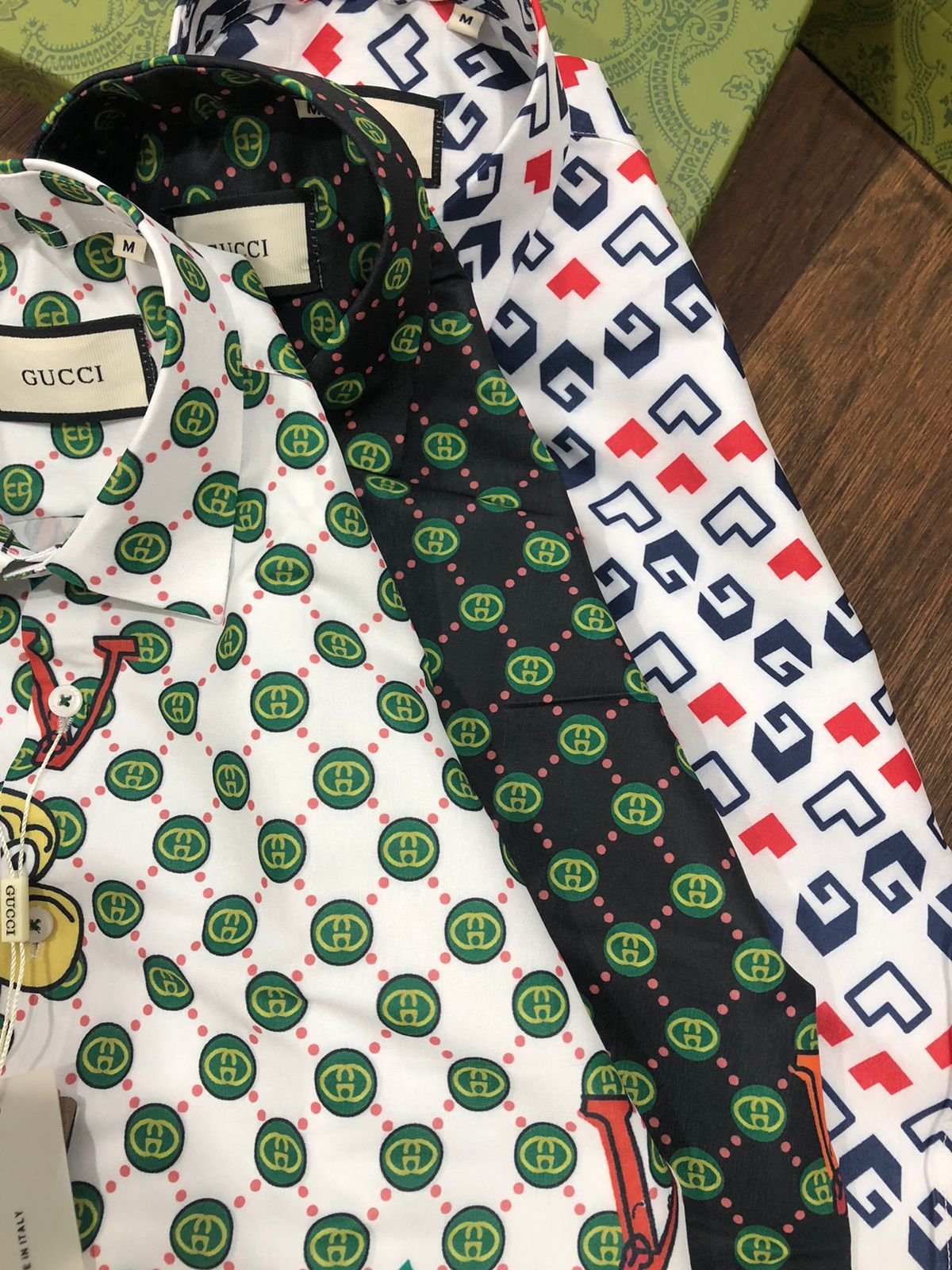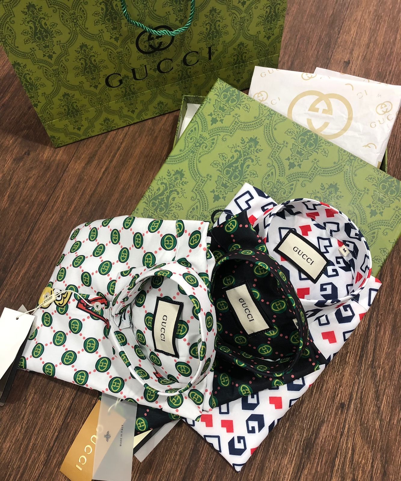 Faites passer votre style au niveau supérieur avec la chemise noire imprimée du logo monogramme GG de GUCCI. Cet article audacieux, disponible en magasin, présente une coupe standard et trois couleurs vives, ainsi que trois variantes uniques. Confectionnée dans un mélange de coton et de lycra Mafatlal de haute qualité, elle est livrée avec sa boîte d’origine, des boutons embossés et du papier sulfurisé pour une expérience luxueuse inégalée.