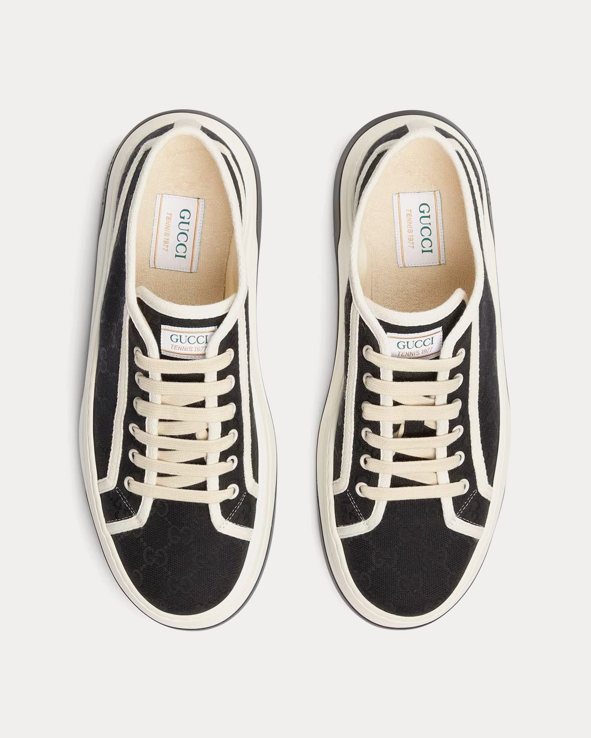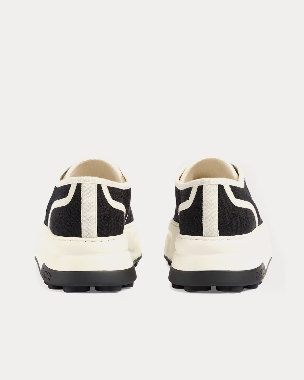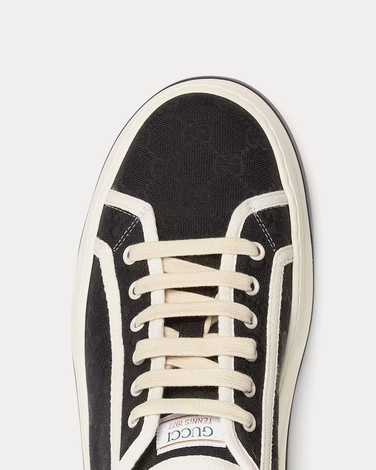 Les baskets basses pour hommes GucciGG Canvas présentent une toile GG noire originale, des bordures en tissu contrastant et des semelles en caoutchouc épaisses avec adhérence en G entrelacés. Fabriquées en Italie.