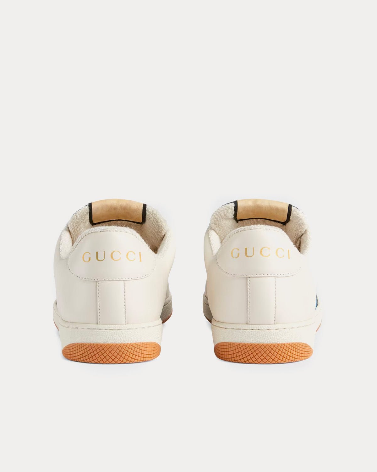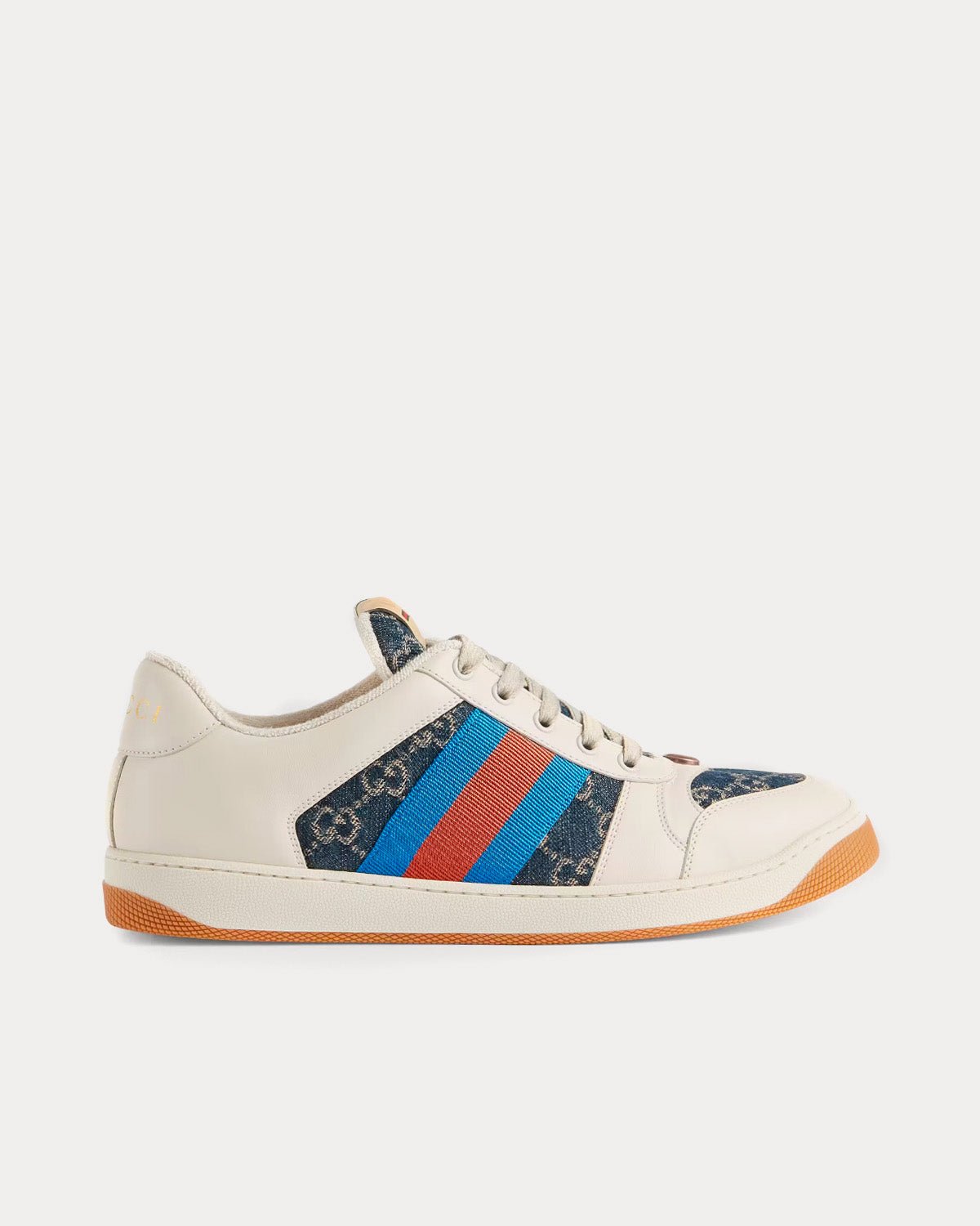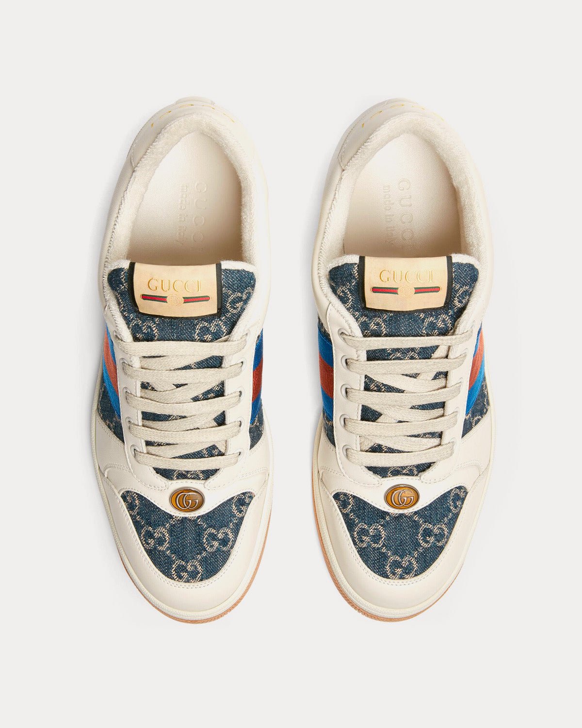 Baskets basses blanches Gucci GG Screener en cuir denim biologique délavé bleu et ivoire