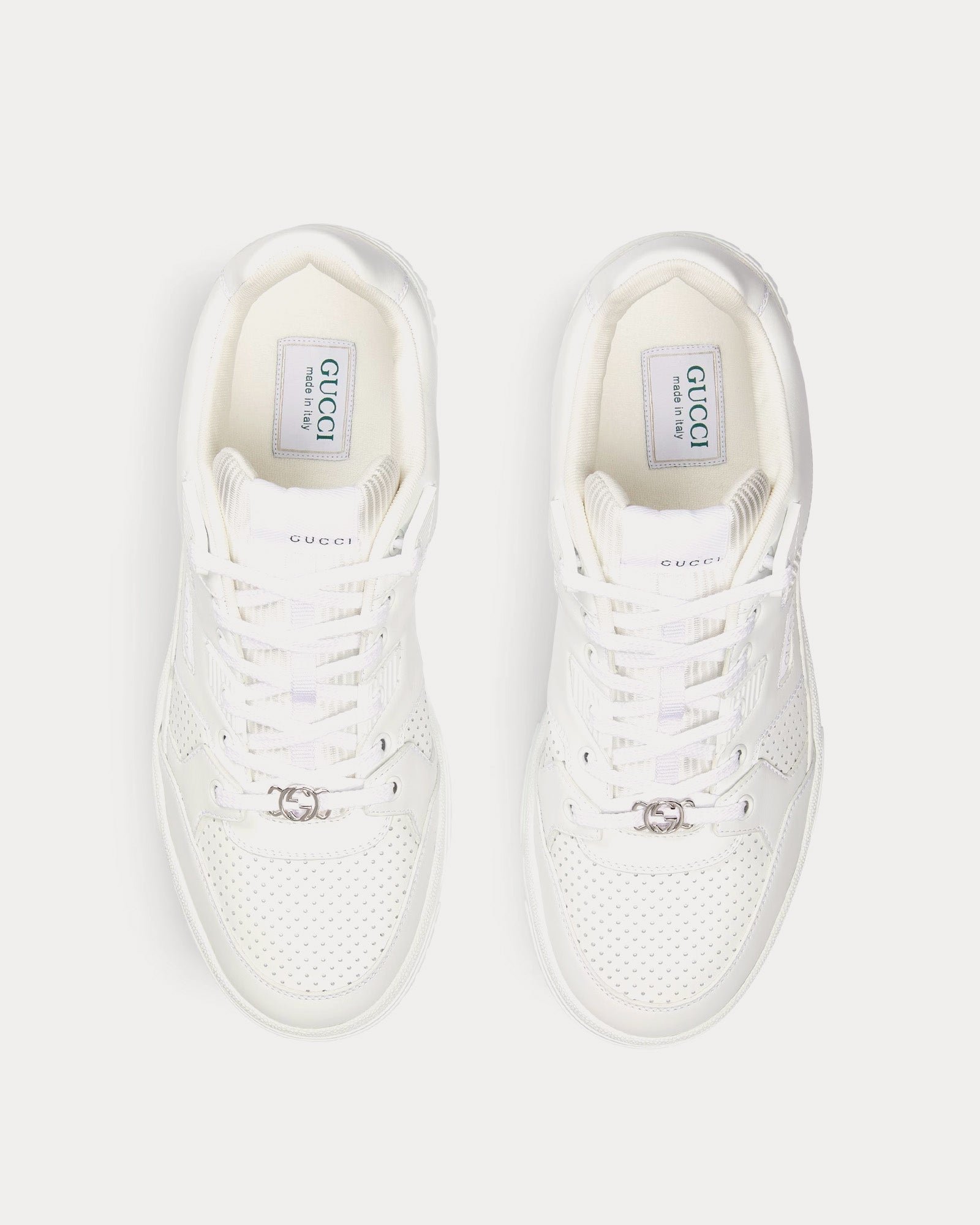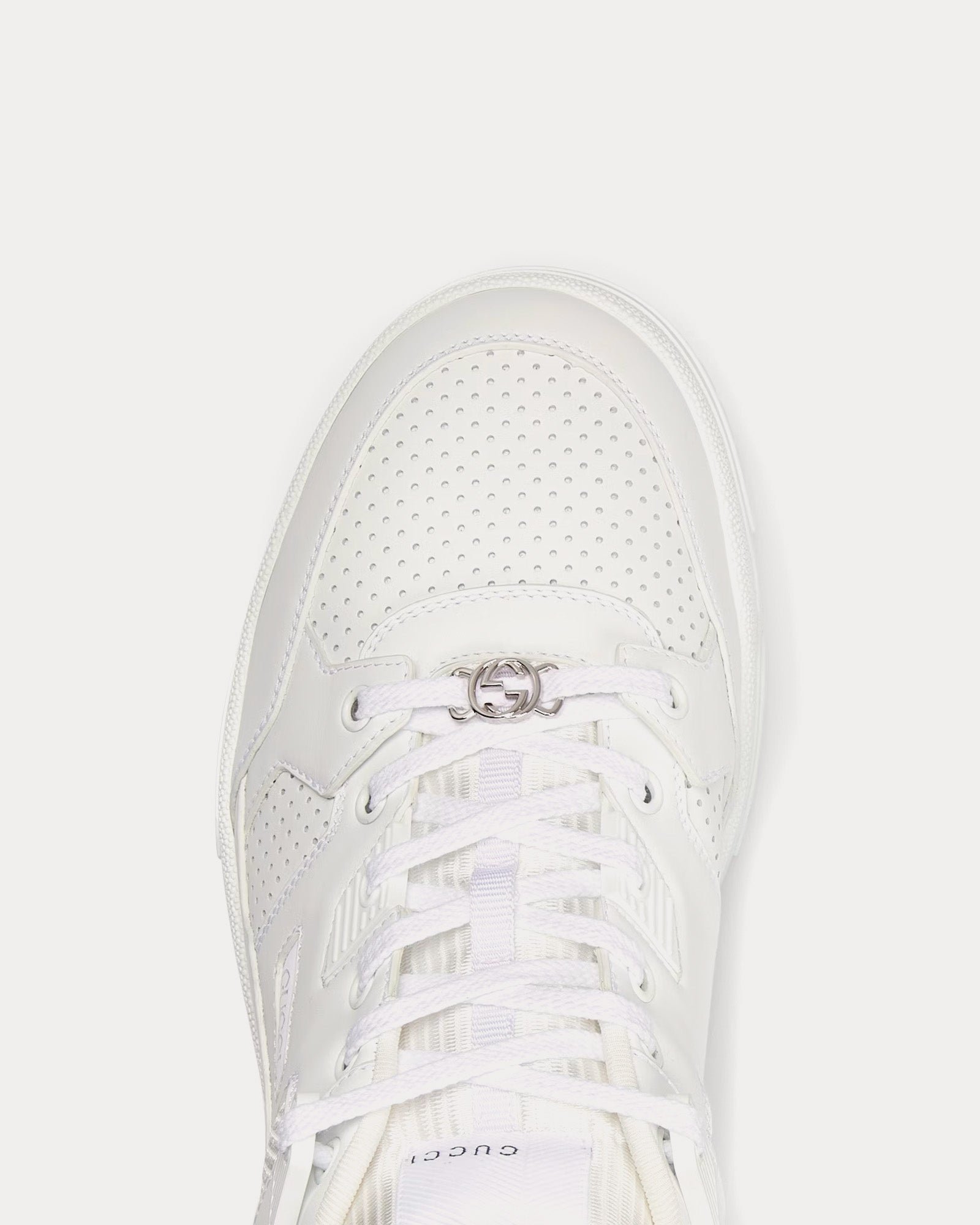 Baskets basses blanches en cuir perforé Gucci avec G entrelacés