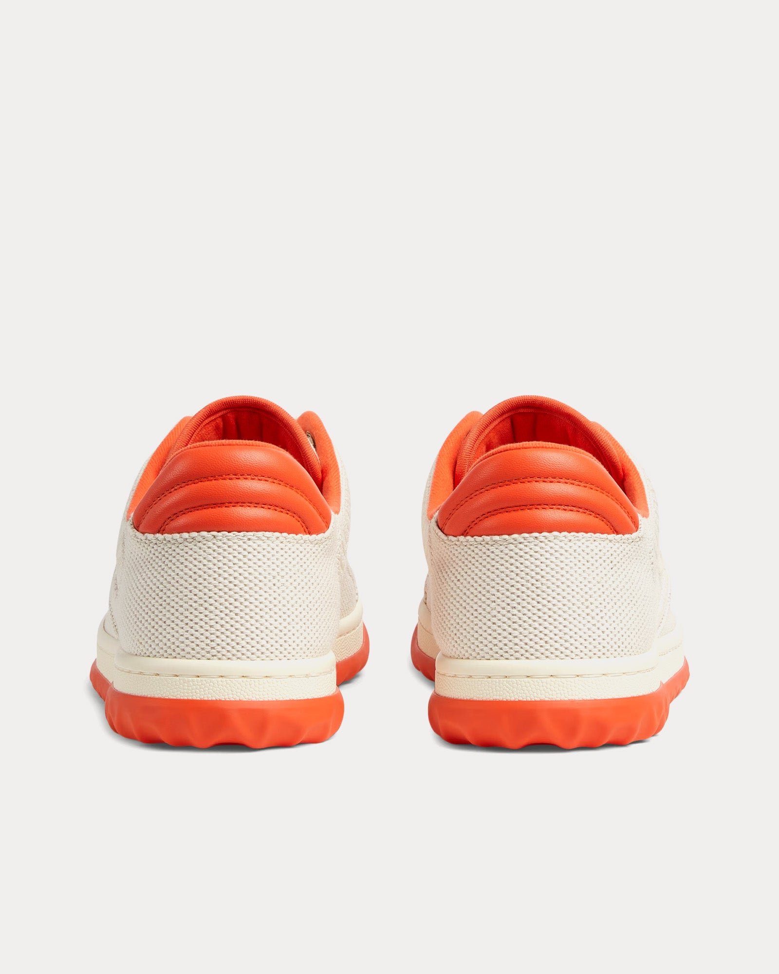 Les baskets basses pour hommes GucciMAC80 en beige et orange sont confectionnées en toile et présentent une broderie G entrelacée, un bout rond, une semelle en caoutchouc et une broderie Gucci sur toute la surface. Fabriquées en Italie.