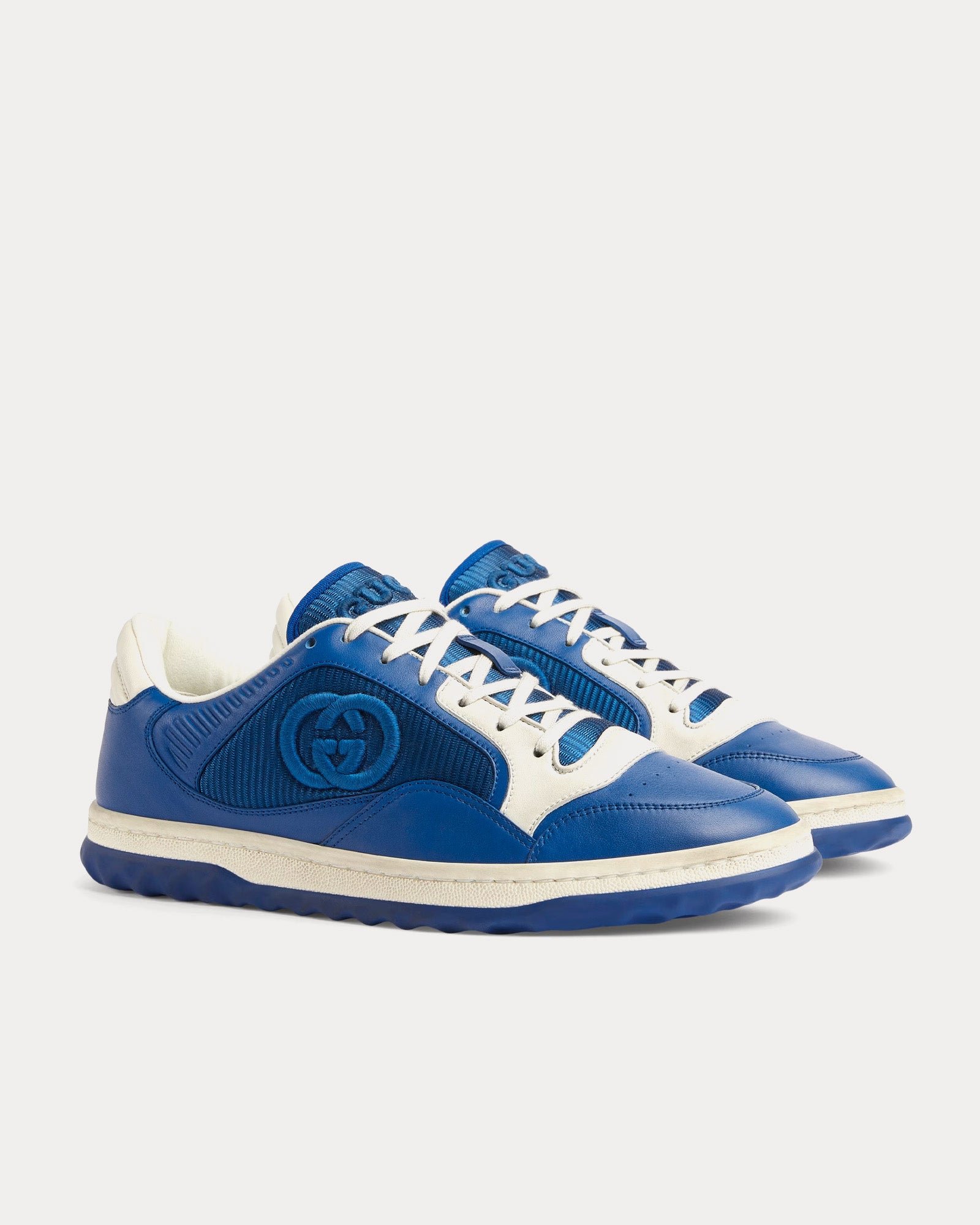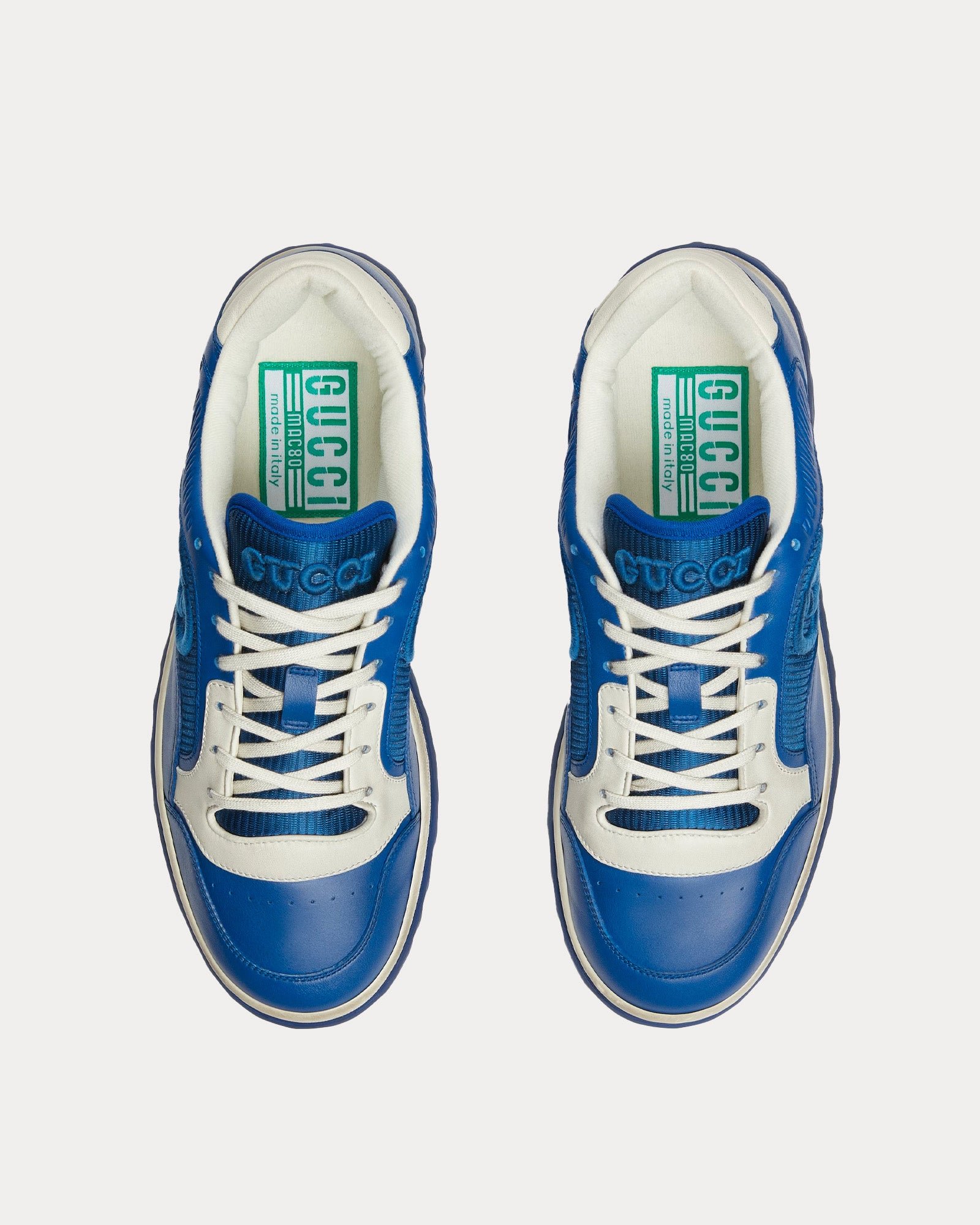 Les baskets basses pour hommes GucciMAC80 de couleur bleue sont confectionnées en cuir et arborent une broderie G entrelacée, un bout rond, une semelle en caoutchouc et une broderie Gucci sur toute la surface. Fabriquées en Italie.