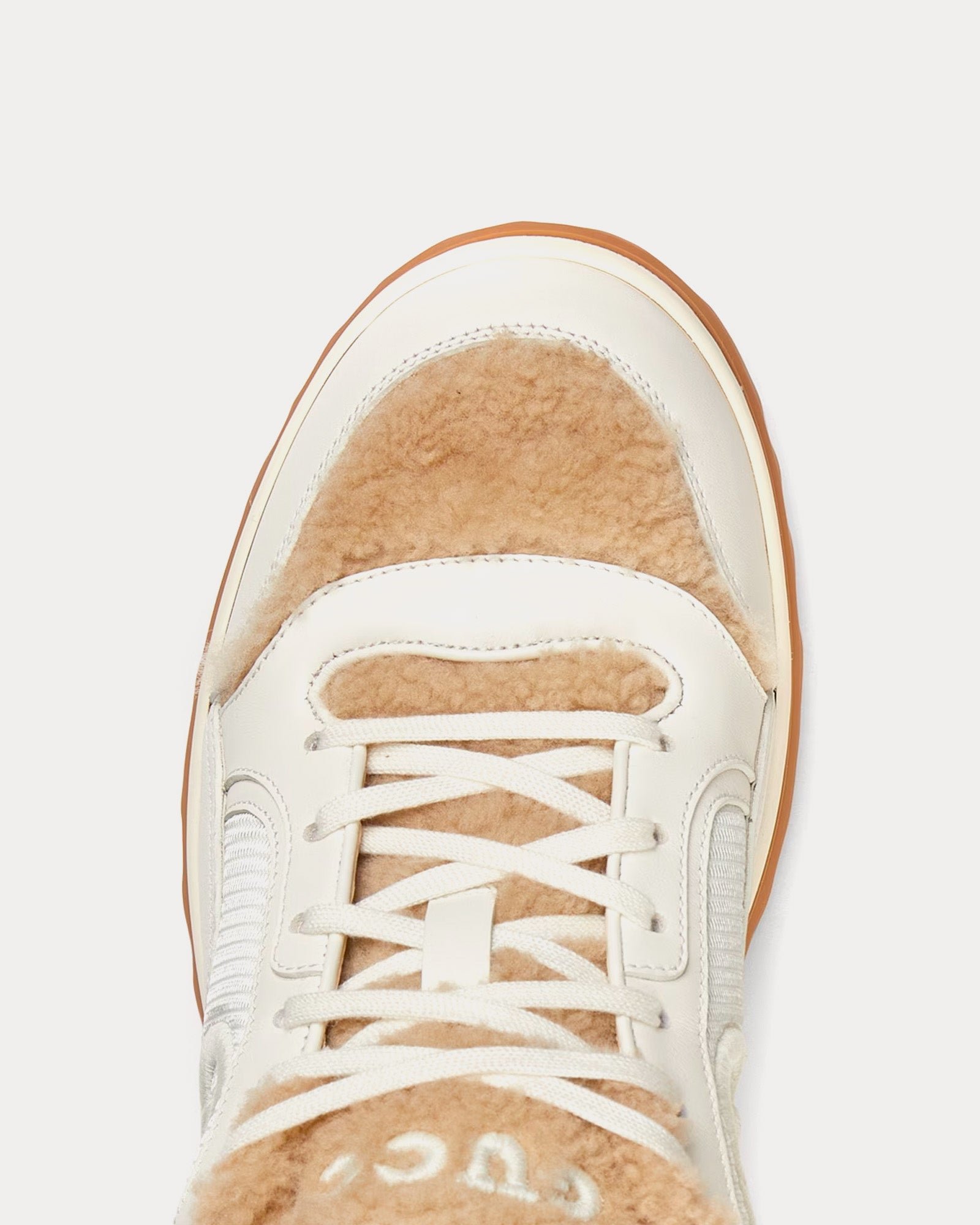 Baskets basses Gucci Mac80 en cuir et laine mérinos blanc cassé/beige