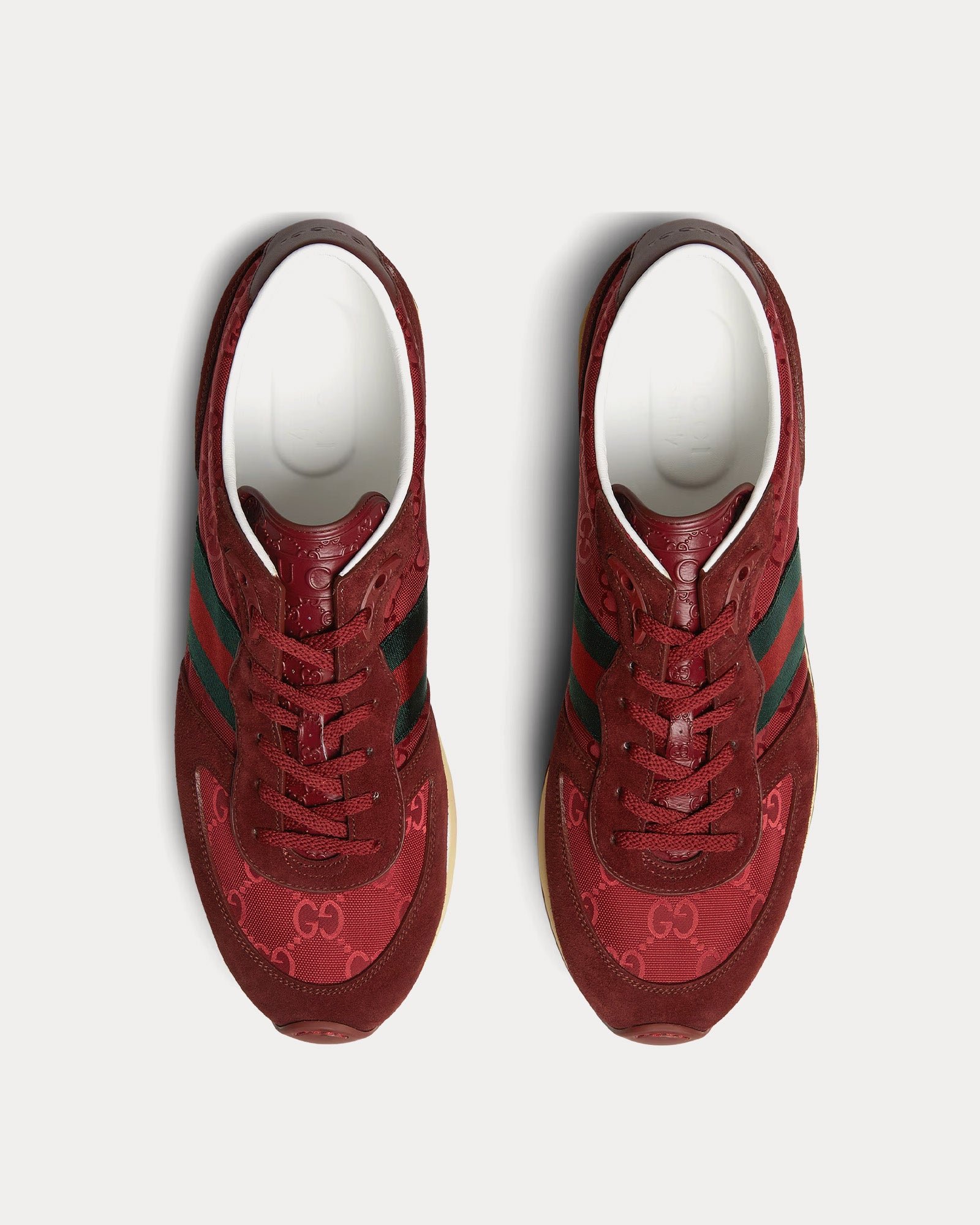 Confectionnées en Italie à partir de la toile GG originale emblématique de la marque et rehaussées de riches bordures en daim et de nylon GG, la tige s’inscrit dans le langage visuel historique de Gucci. La bande Web verte et rouge emblématique court sur les côtés, rendant hommage aux racines équestres de la maison tout en ajoutant un contraste intemporel.