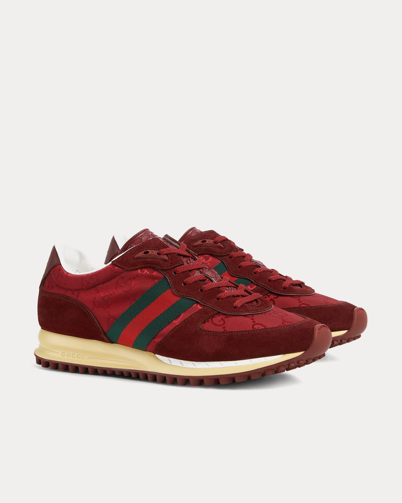 Les baskets basses Gucci Re-Motion pour homme en toile GG originale rouge offrent un mélange raffiné de design d’archives et de sensibilité streetwear moderne. Alliant savoir-faire classique et détails contemporains, ce modèle illustre la capacité de Gucci à réinventer les icônes du patrimoine pour le porteur moderne.
