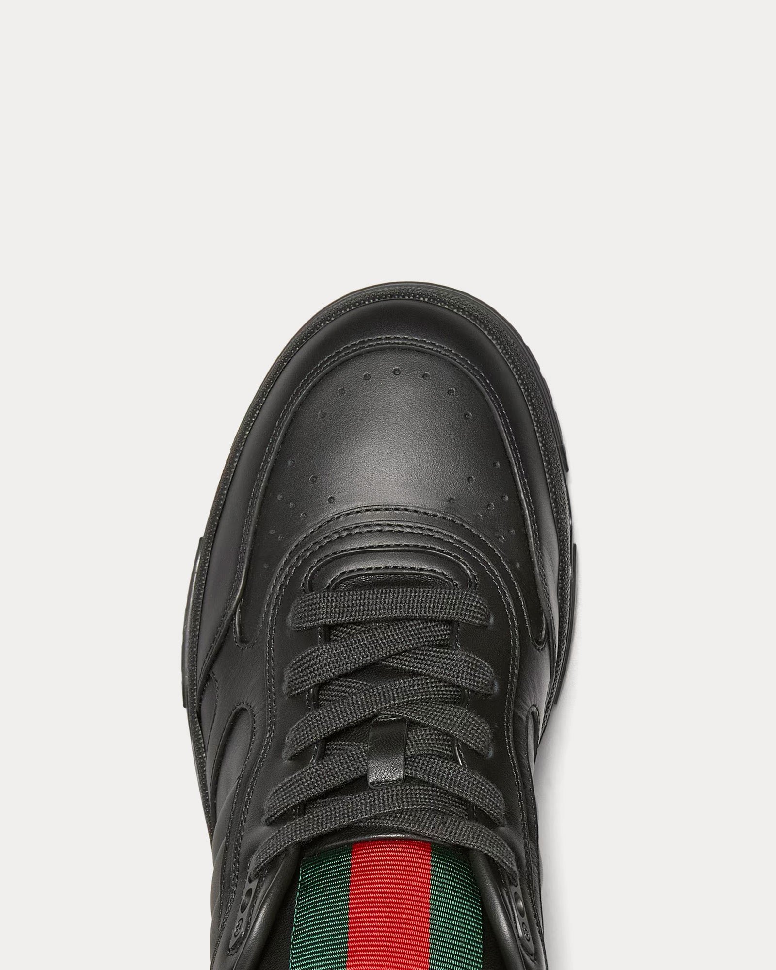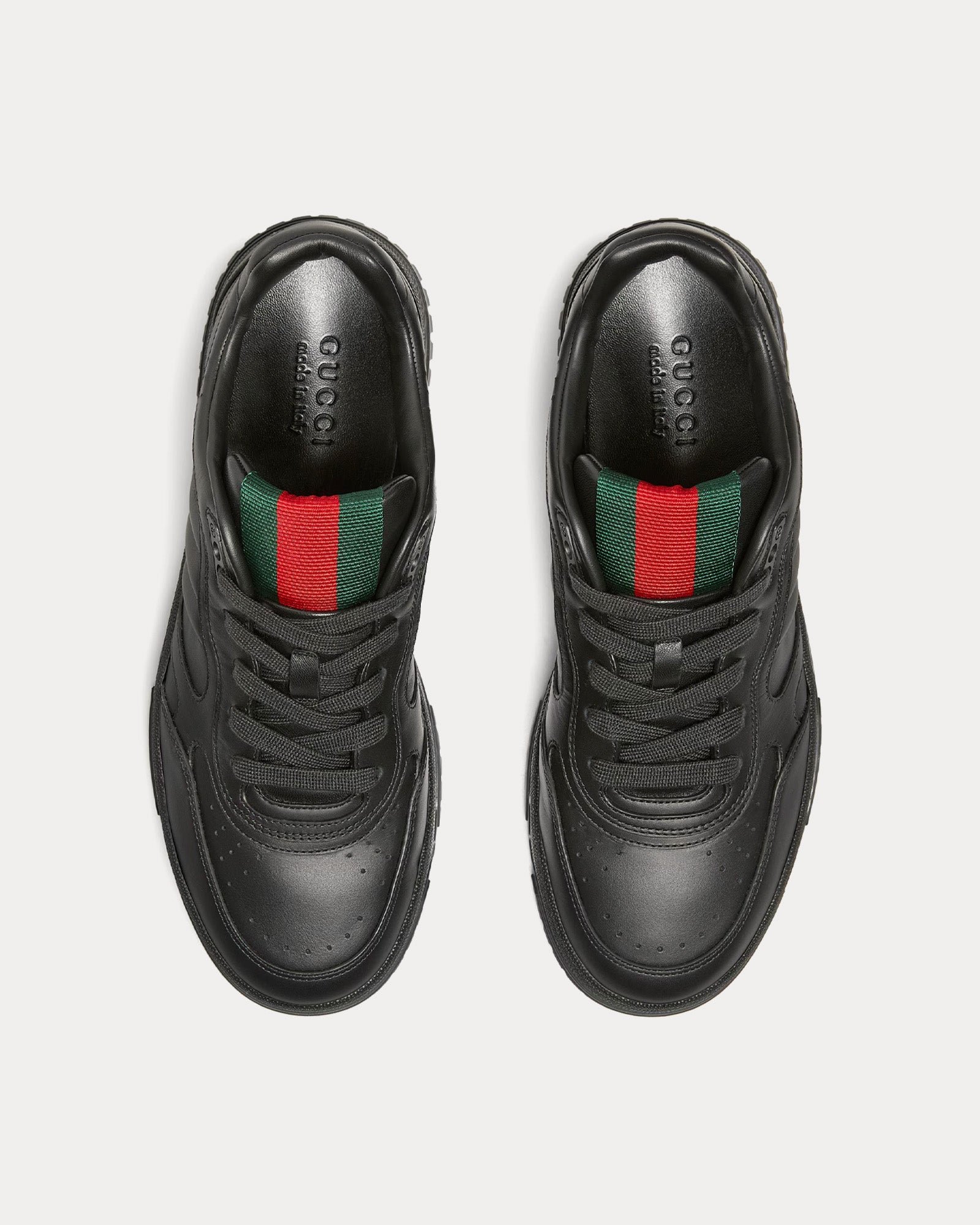 L’élément le plus remarquable est leur languette Web verte et rouge, une réinterprétation audacieuse des rayures emblématiques de Gucci. Parmi les autres éléments emblématiques, on trouve une étiquette Web G entrelacés, des détails G entrelacés sur les œillets et le logo Gucci sur la semelle extérieure en caoutchouc.