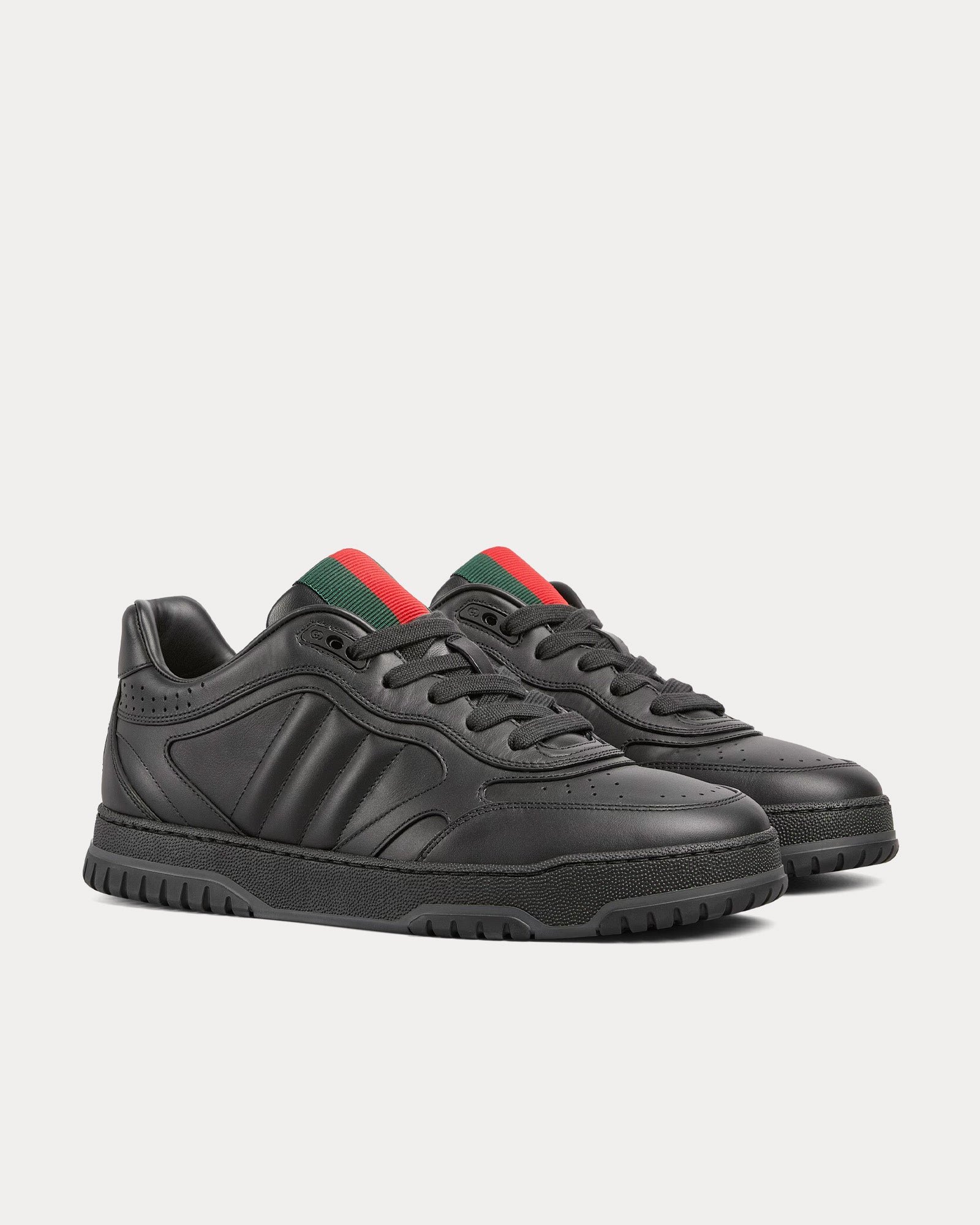Les baskets basses Gucci Re-Web pour homme en noir apportent une touche contemporaine et audacieuse à l’esthétique emblématique de Gucci. Confectionnées en Italie en cuir noir lisse, ces baskets raffinées sont rehaussées de détails emblématiques.