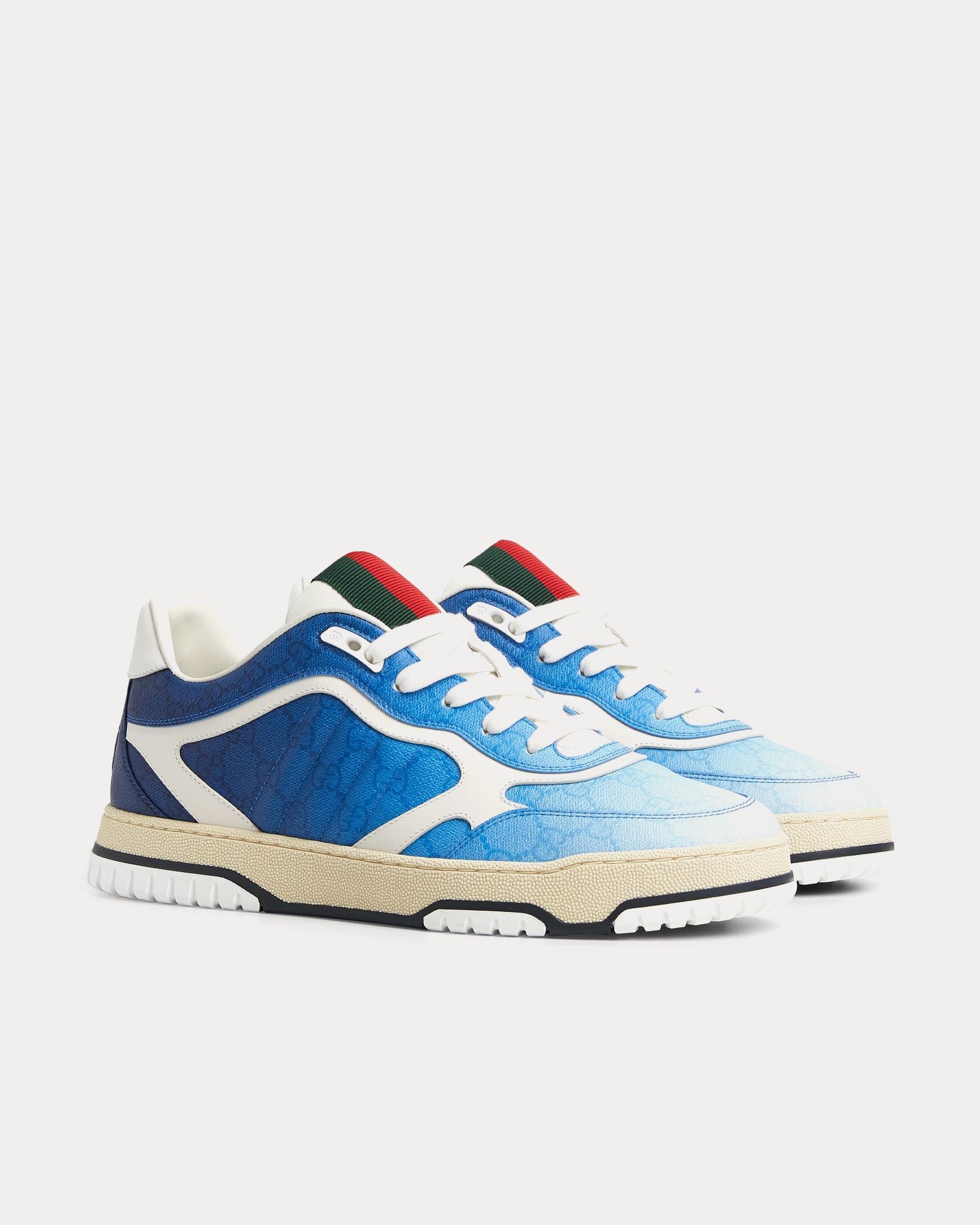 Les baskets basses pour homme Gucci Re-Web avec GG Supreme en bleu dégradé réinventent une silhouette classique avec des détails audacieux inspirés de l’héritage et une touche de fraîcheur et de modernité. L’emblématique bande Web Gucci est au premier plan, redéfinissant les éléments traditionnels avec une touche de modernité.