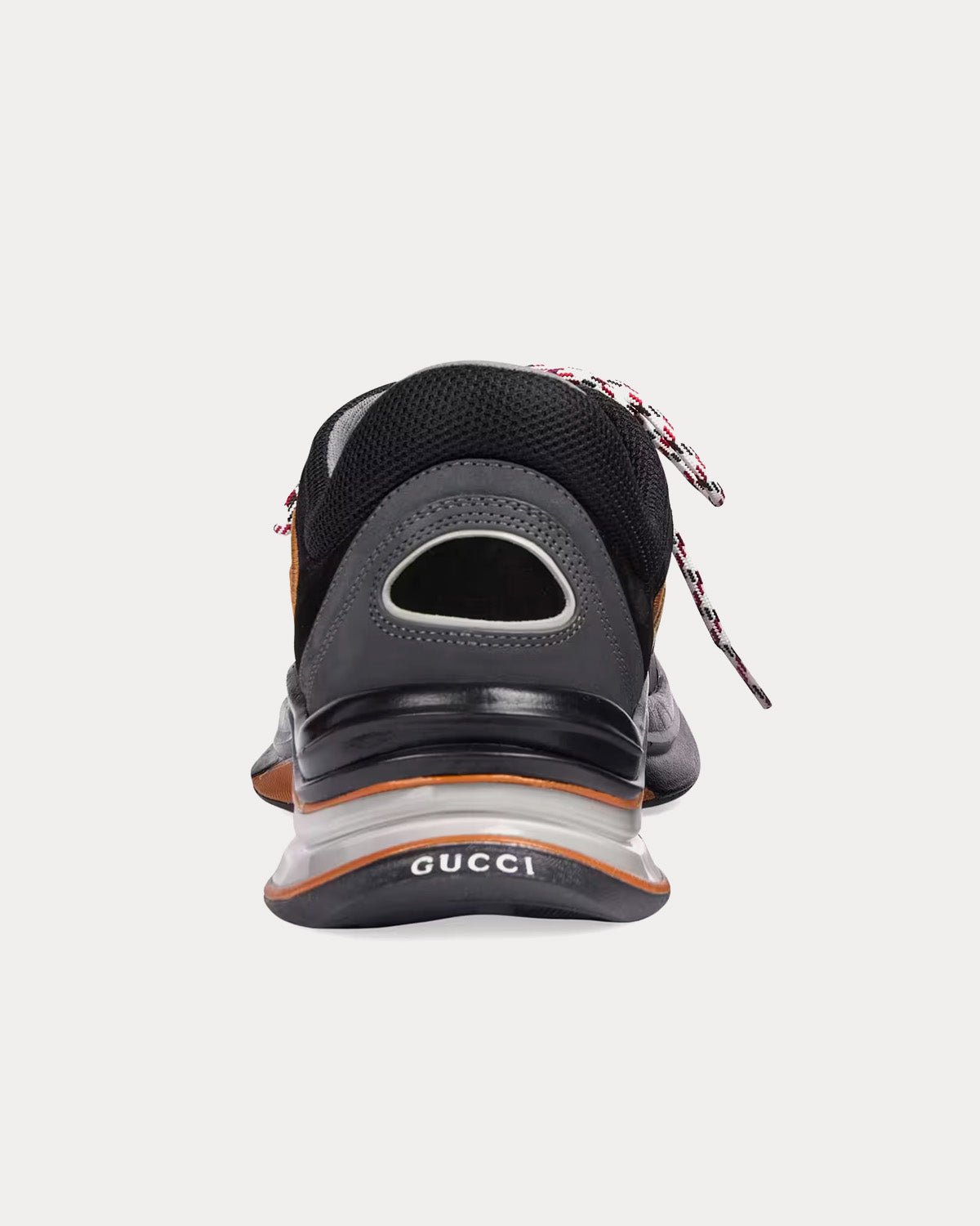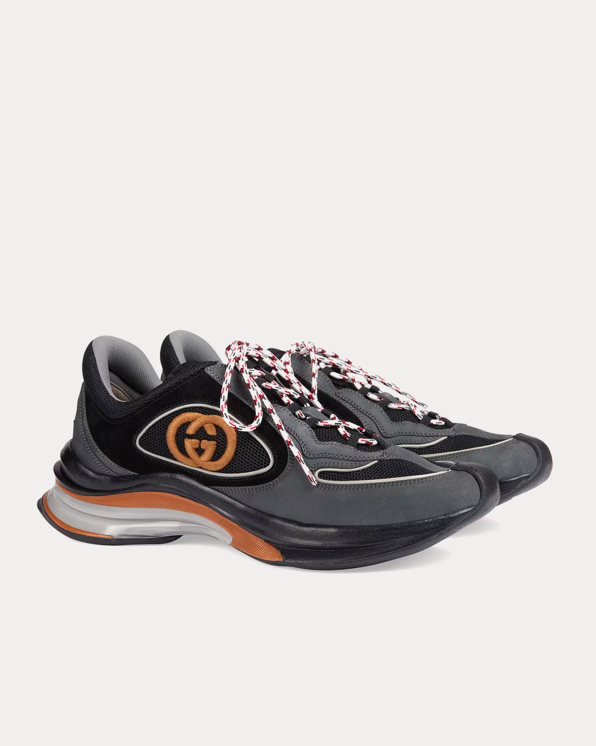 Les baskets basses Gucci Run pour homme en daim gris et finitions en daim noir s’inspirent des baskets sportives et arborent un G entrelacé, une semelle en caoutchouc bicolore, une fermeture à lacets et un talon bas. Fabriquées en Italie.