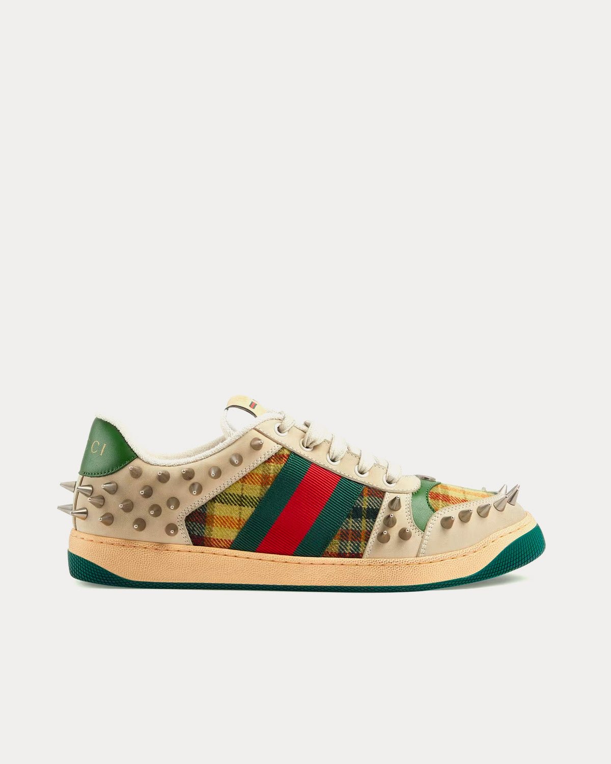 Baskets basses multicolores à rayures et clous Gucci Screener en tartan