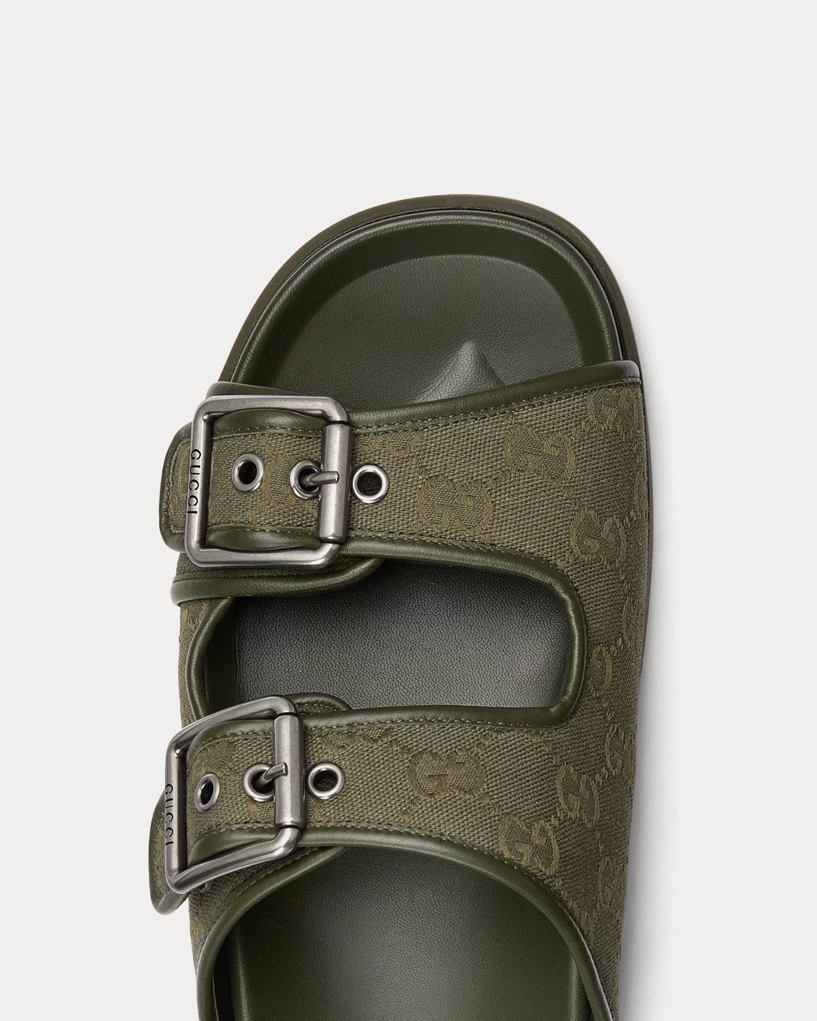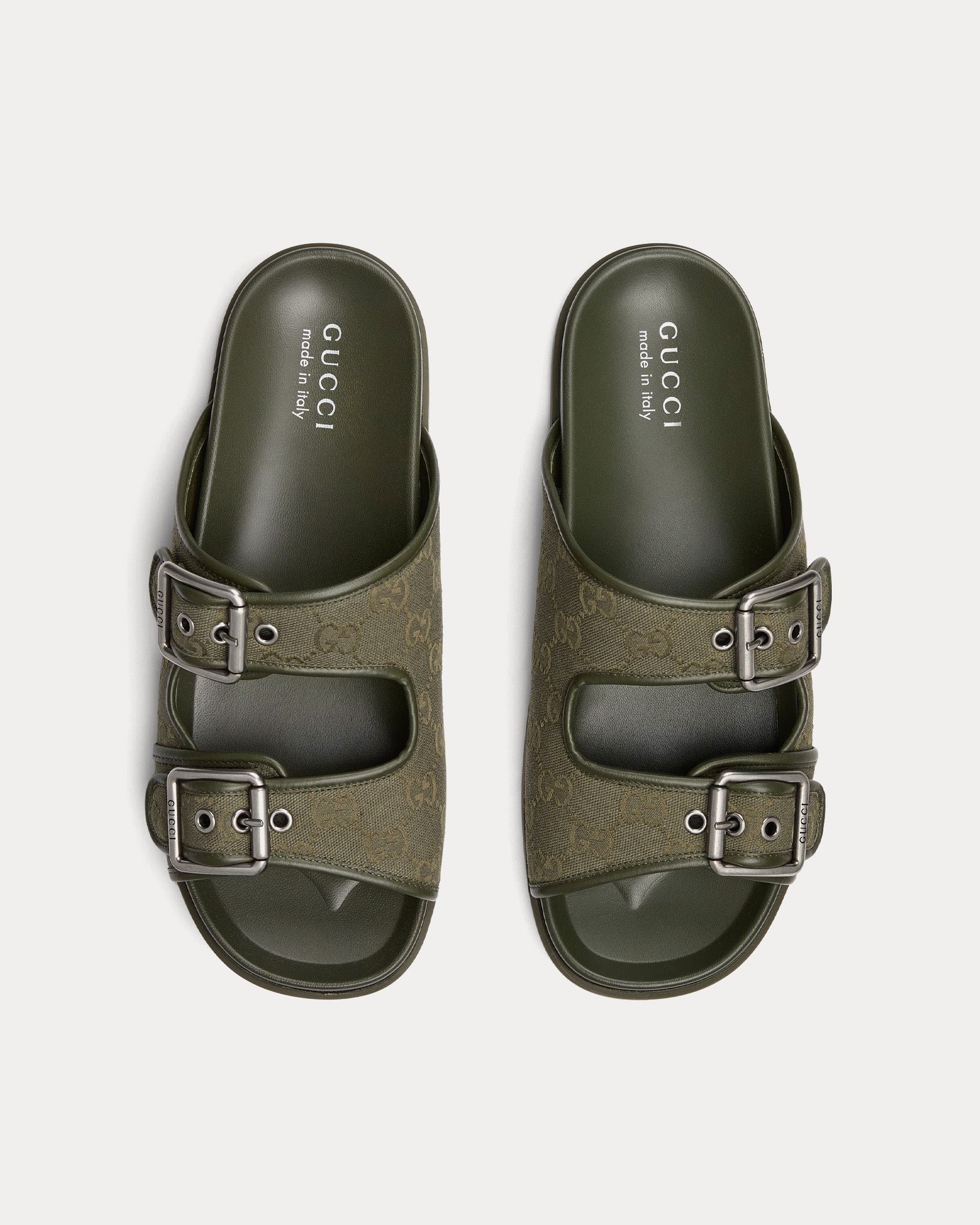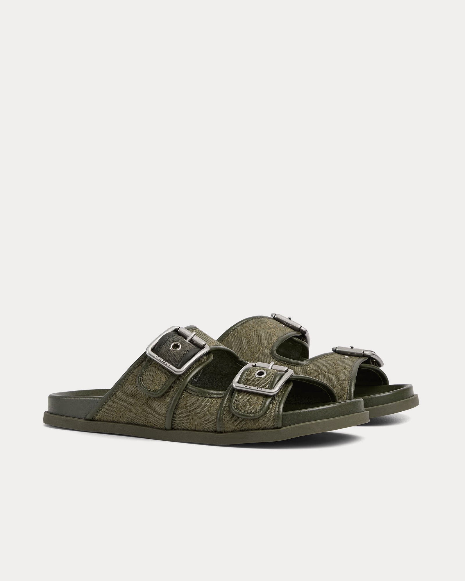 Les sandales Gucci Slide Buckle pour homme en toile GG vert foncé allient savoir-faire traditionnel et modernité. Confectionnées dans la toile GG emblématique de Gucci, signature de la Maison depuis sa création, ces sandales élégantes sont dotées d’une grande boucle audacieuse qui allie design classique et détails contemporains.