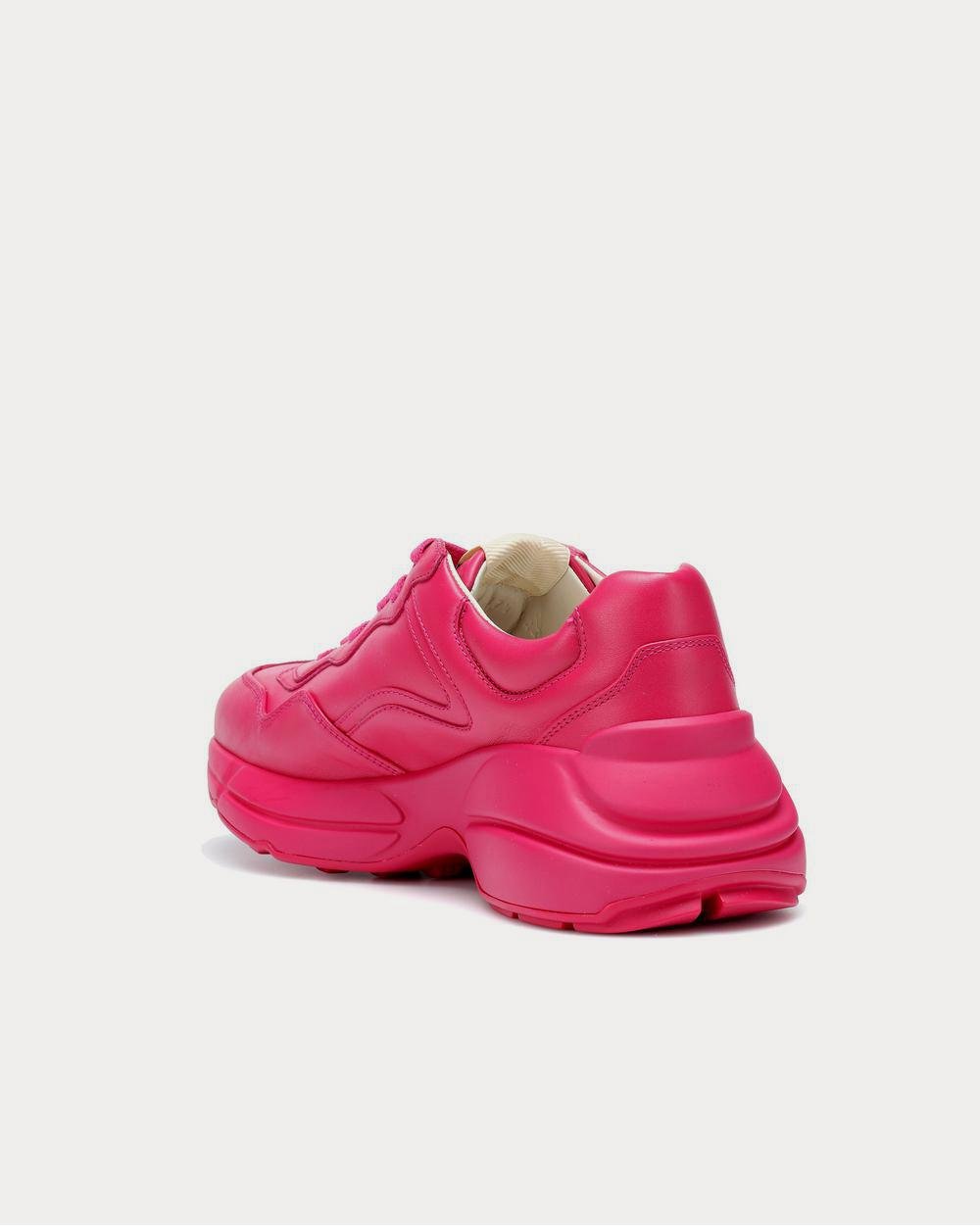 Les baskets « Dad » sont de rigueur cette saison, et la silhouette Rhyton, généreuse et satisfaisante, de Gucci en est la parfaite illustration. Confectionnées en Italie en cuir rose vif, elles sont ornées du logo d’archive de la marque estampillé sur les côtés. Portez-les pour une touche décalée avec des robes résolument romantiques.