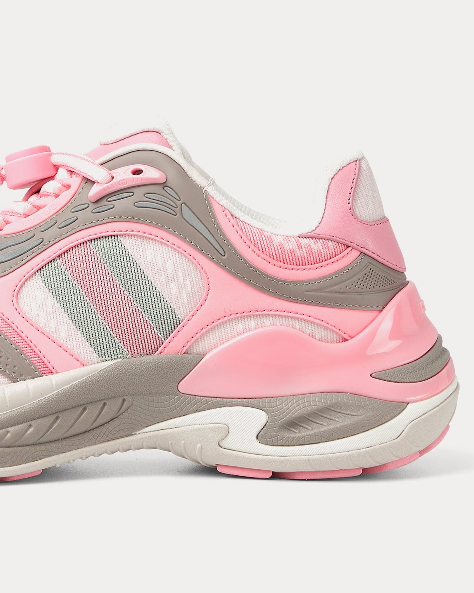 L’empeigne associe mesh respirant et empiècements en cuir, créant une esthétique à la fois raffinée et sportive. Les détails réfléchissants ornés du logo GG ajoutent une touche subtile, tandis que le détail Web rembourré renforce le confort et l’identité de la marque.