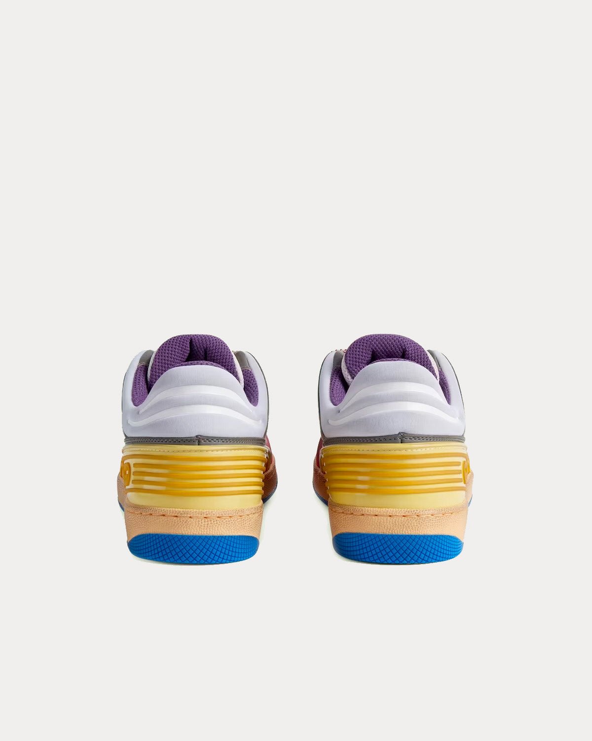 Arborant un look emblématique des baskets de basket des années 90, la Maison présente la nouvelle version de la basket à lacets : la Gucci Basket. Ce modèle bas incarne l’expression de l’esthétique du terrain grâce à des détails et des caractéristiques distinctifs. Proposée dans un mélange de tissus aux couleurs vives et ornée d’un léger effet vieilli, chaque paire est principalement confectionnée en Demetra. Créé selon les mêmes procédés de tannage, ce nouveau matériau offre souplesse et résistance, ainsi qu’une finition souple. Ce matériau écologique associe des matières premières non animales, principalement issues de sources durables, renouvelables et biosourcées.