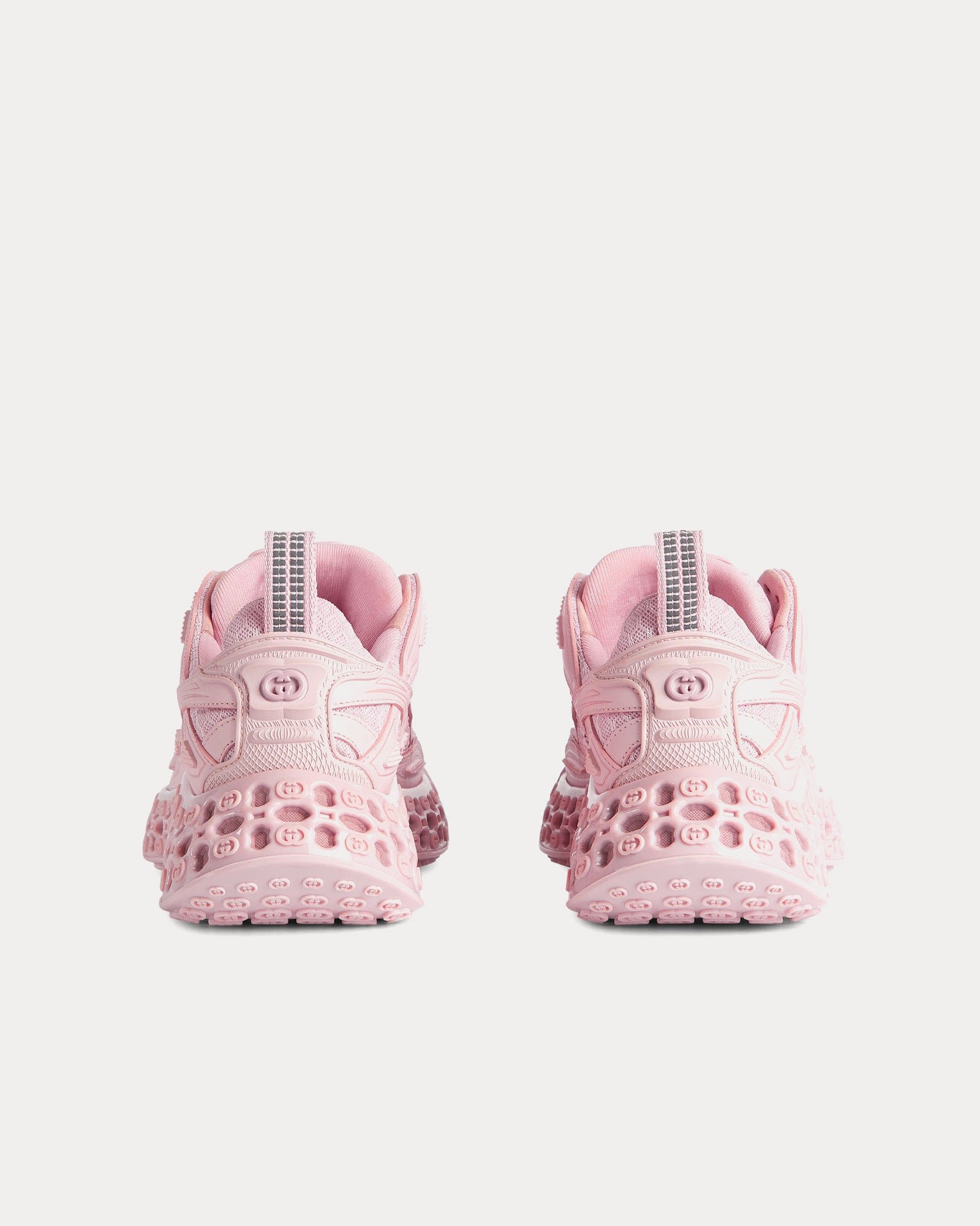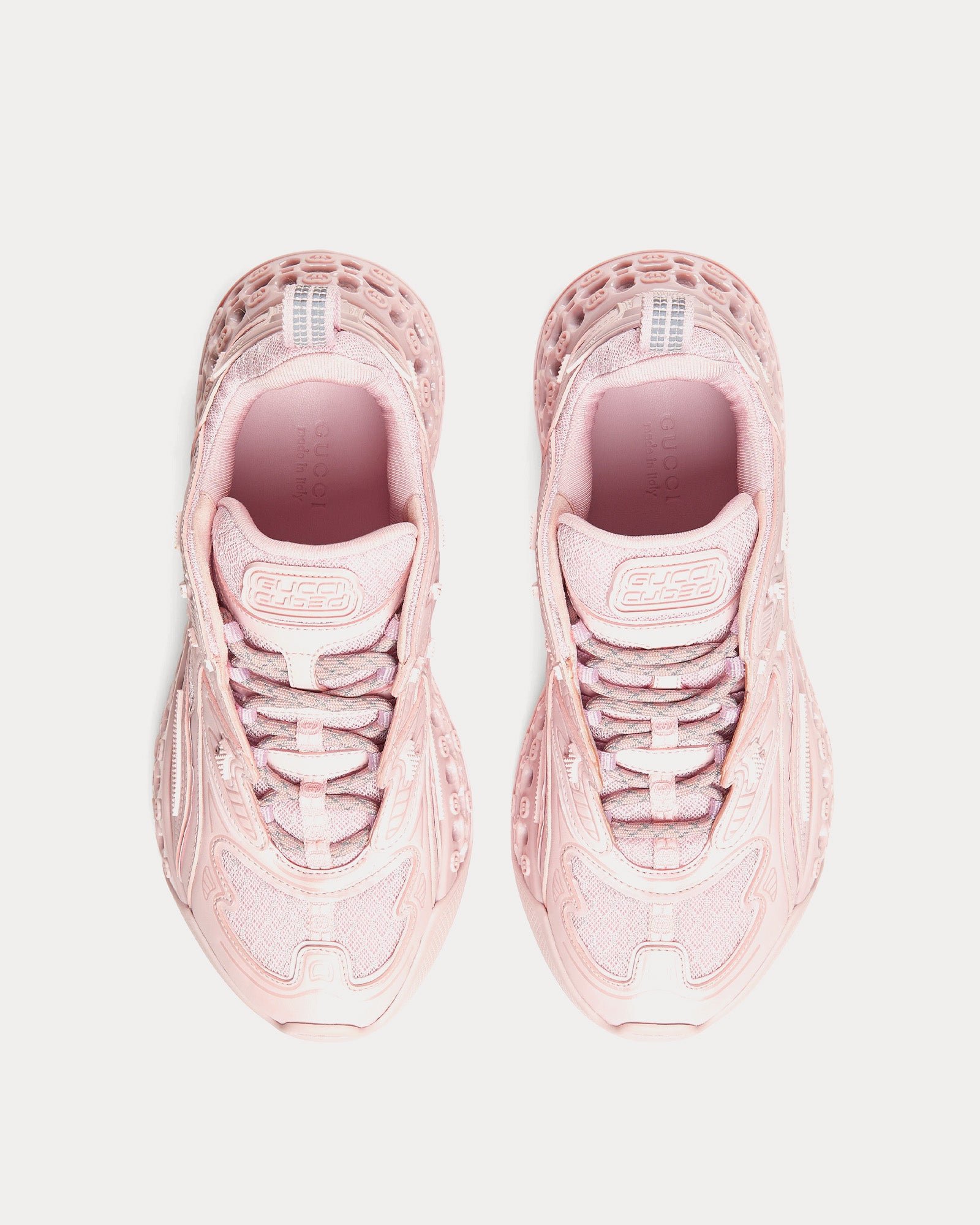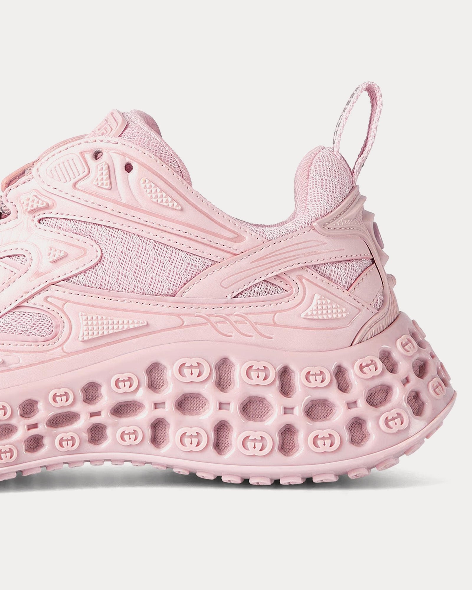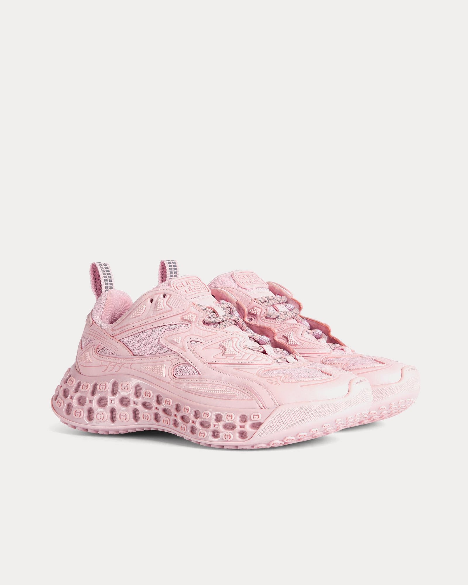 Les baskets basses pour femme Gucci Cub3d Demetra rose clair illustrent l’approche innovante de Gucci en matière de matériaux et de design pour la collection printemps-été 2025. Fabriquées en Demetra, composé d’au moins 70 % de matières premières végétales telles que la viscose, la pulpe de bois et le polyuréthane biosourcé, ces baskets allient durabilité et luxe.