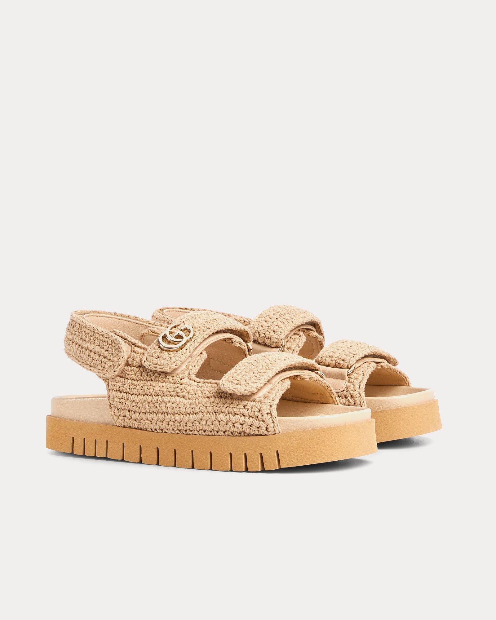 Sandales Gucci Double G en toile GG beigeSandales Gucci Double G en toile GG beige