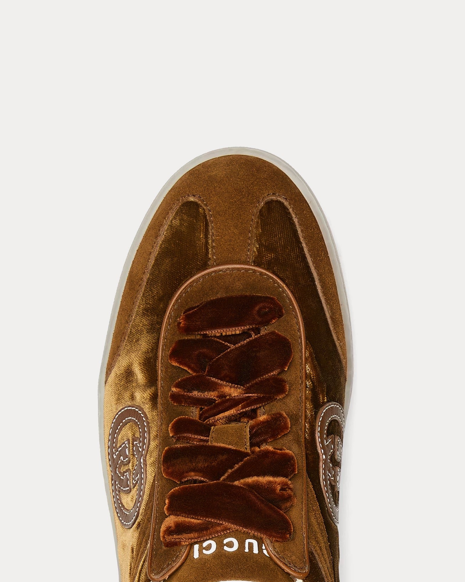 Leur silhouette épurée est agrémentée d’une fermeture à lacets et d’une semelle plate pour plus de confort et de polyvalence. Une paire de lacets supplémentaire est incluse pour personnaliser encore plus votre look. Faisant partie de la collection automne-hiver 2025 et fabriquées en Italie, les baskets Gucci G75 baskets en velours marron offrent une version luxueuse d’un classique intemporel.