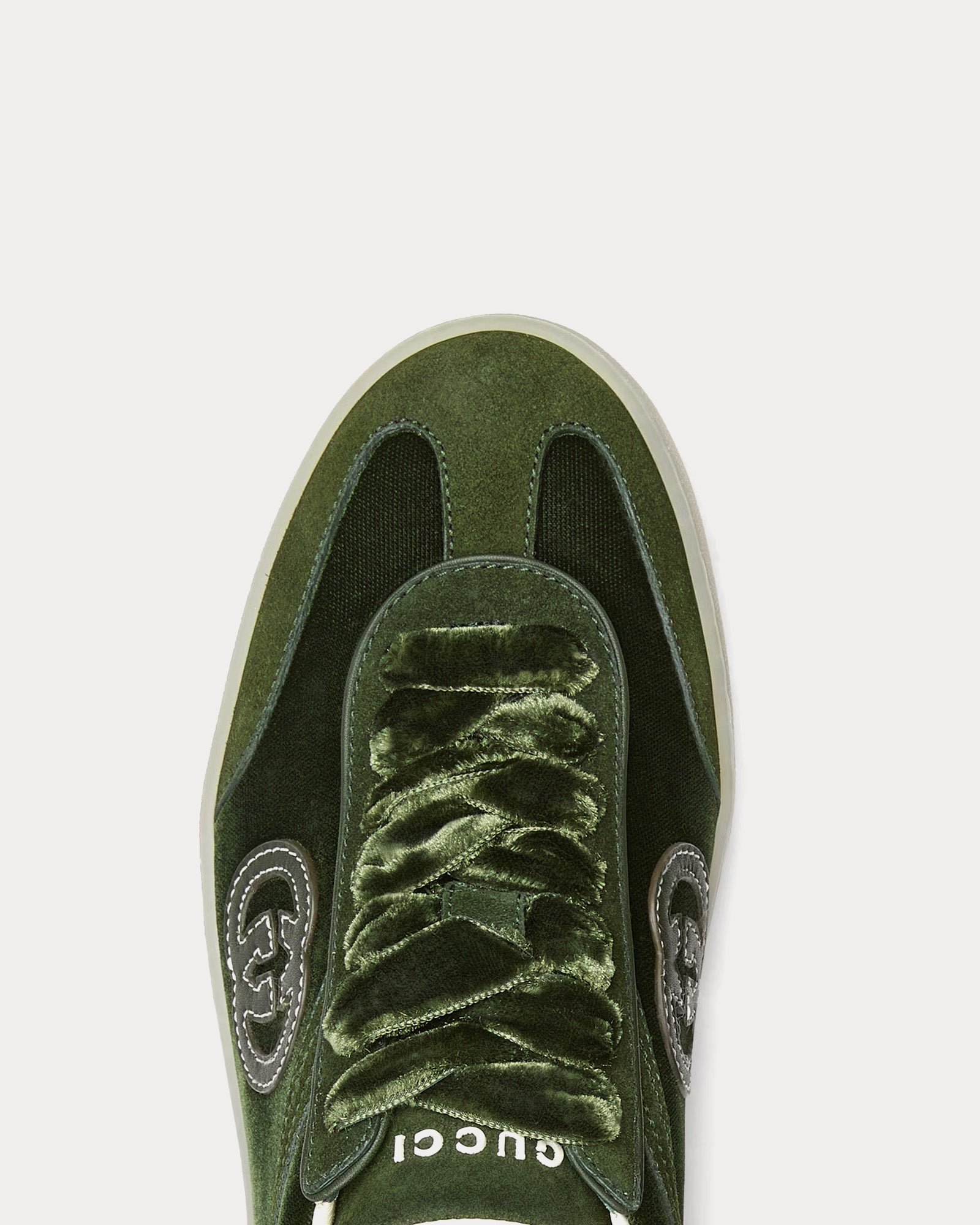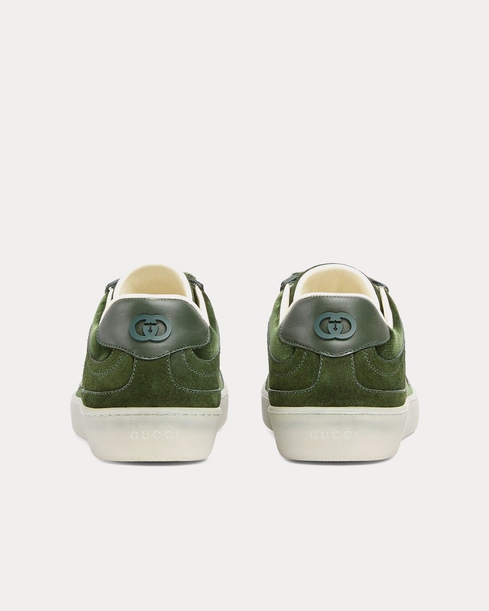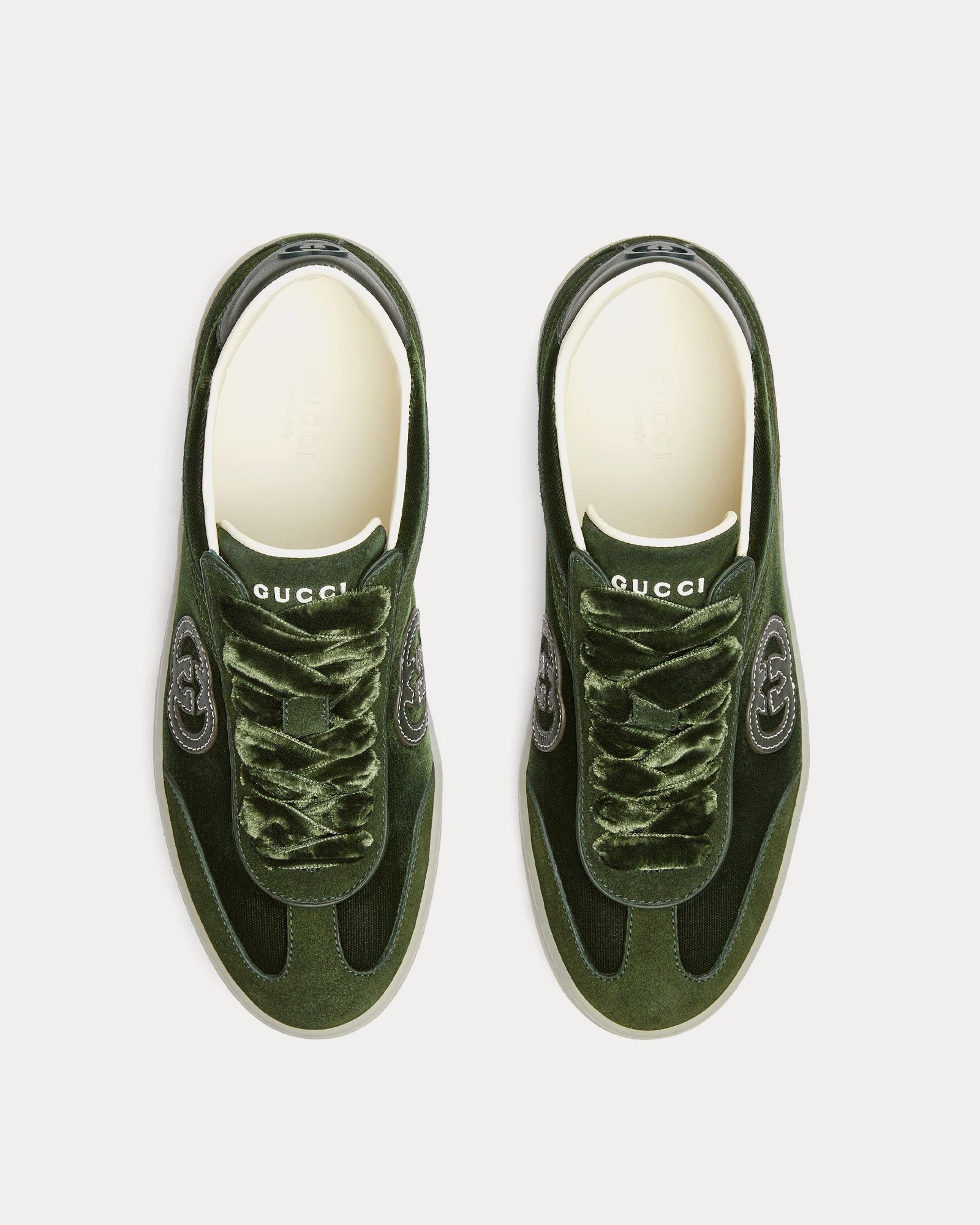 La silhouette épurée est dotée d’une fermeture à lacets et d’une semelle plate pour plus de confort et de polyvalence. Une paire de lacets supplémentaire est incluse pour personnaliser davantage le look. Faisant partie de la collection automne-hiver 2025 et fabriquées en Italie, les Gucci G75baskets en velours vert foncé offrent une version luxueuse d’un classique intemporel.