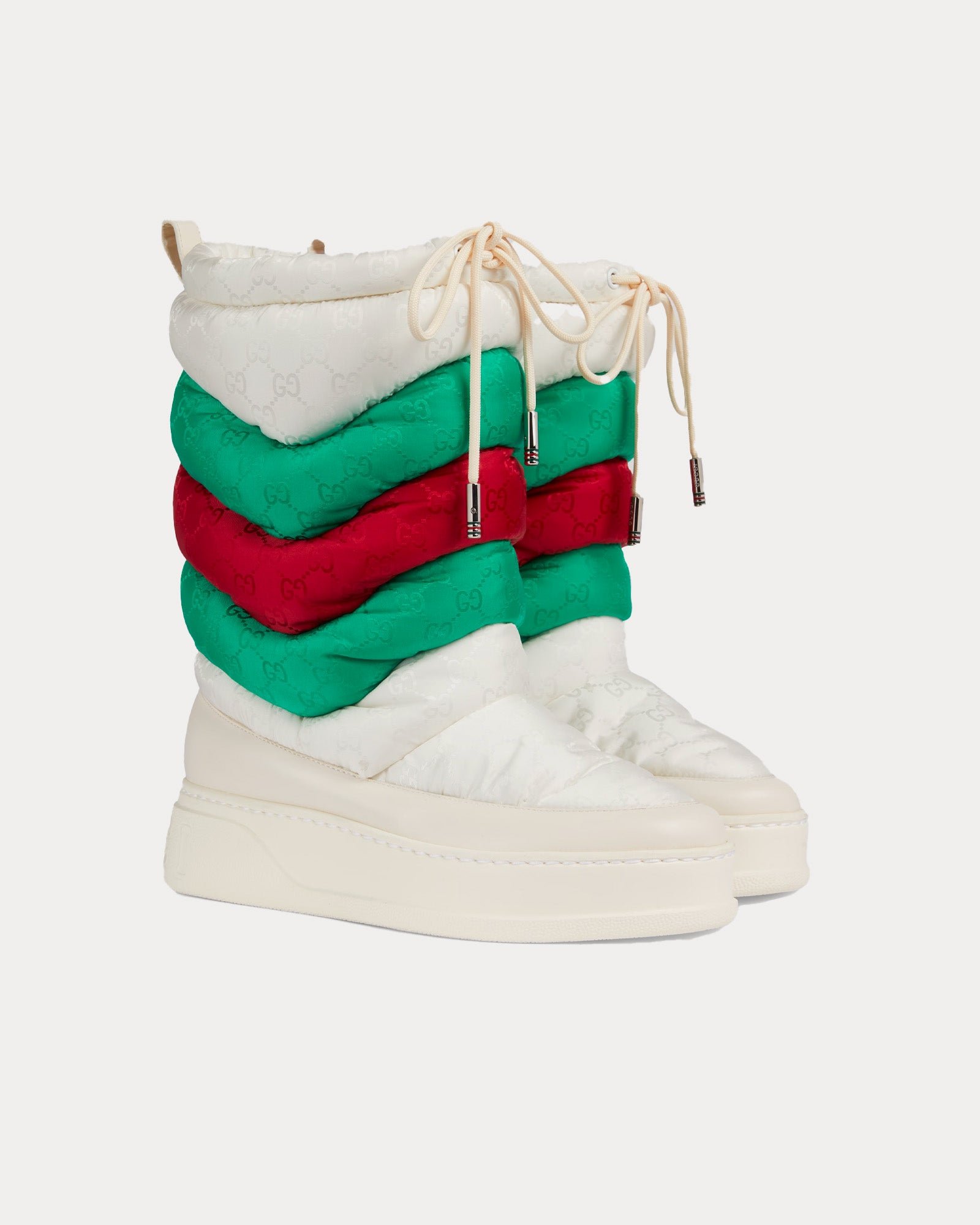 Bottes de neige Gucci GG Chevron en nylon blanc cassé/vert/rouge