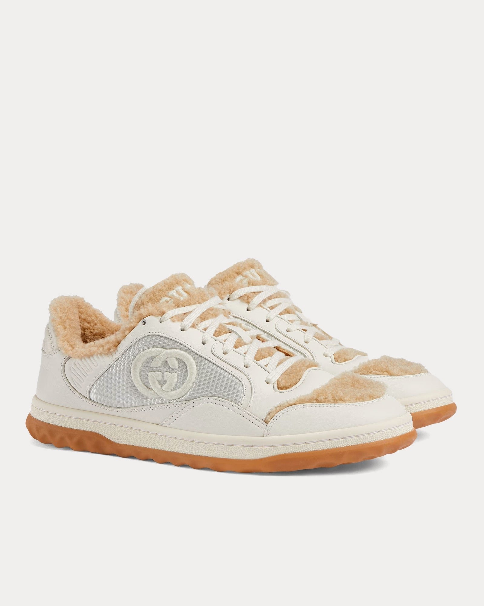 Baskets basses Gucci Mac80 en cuir et laine mérinos blanc cassé/beige