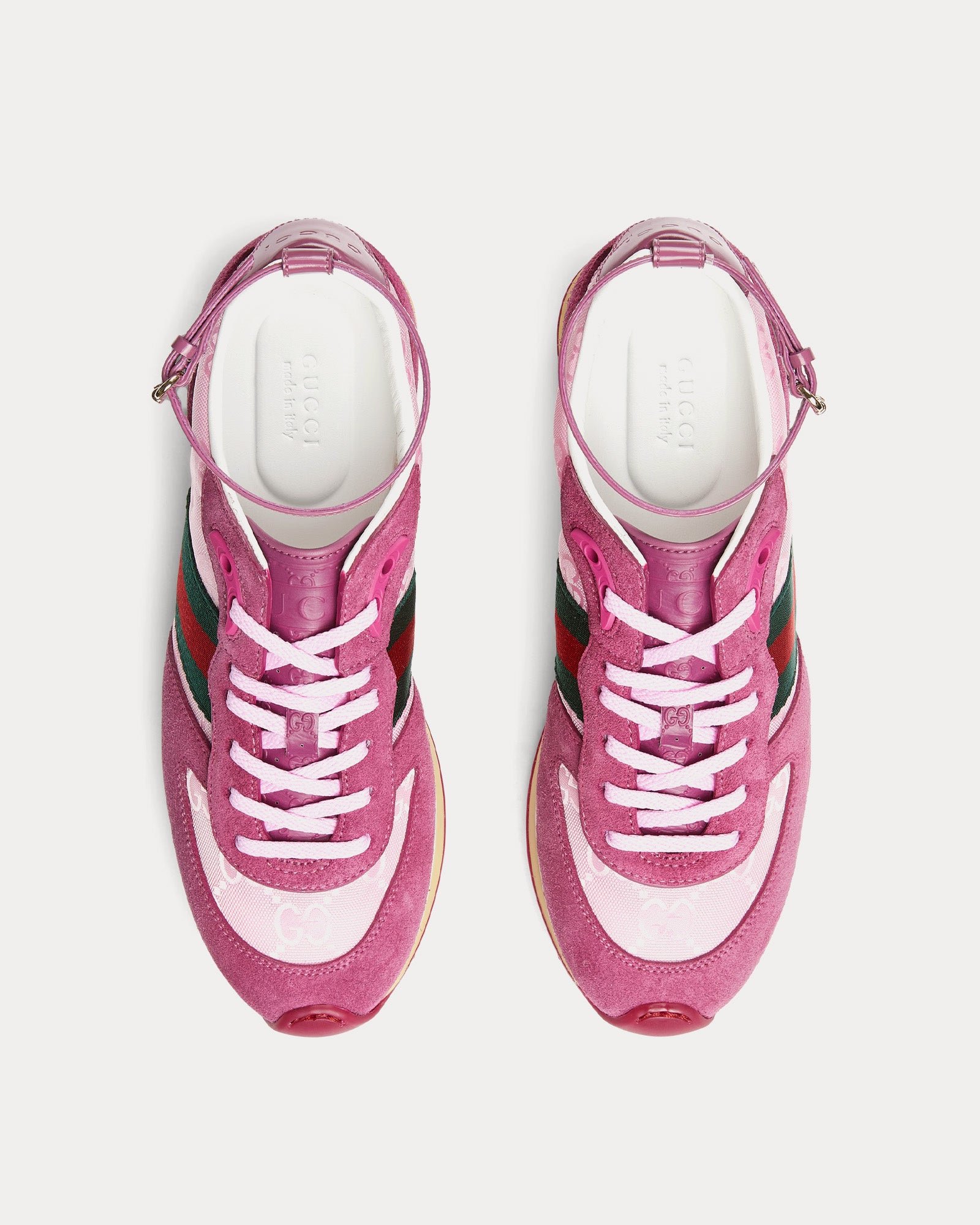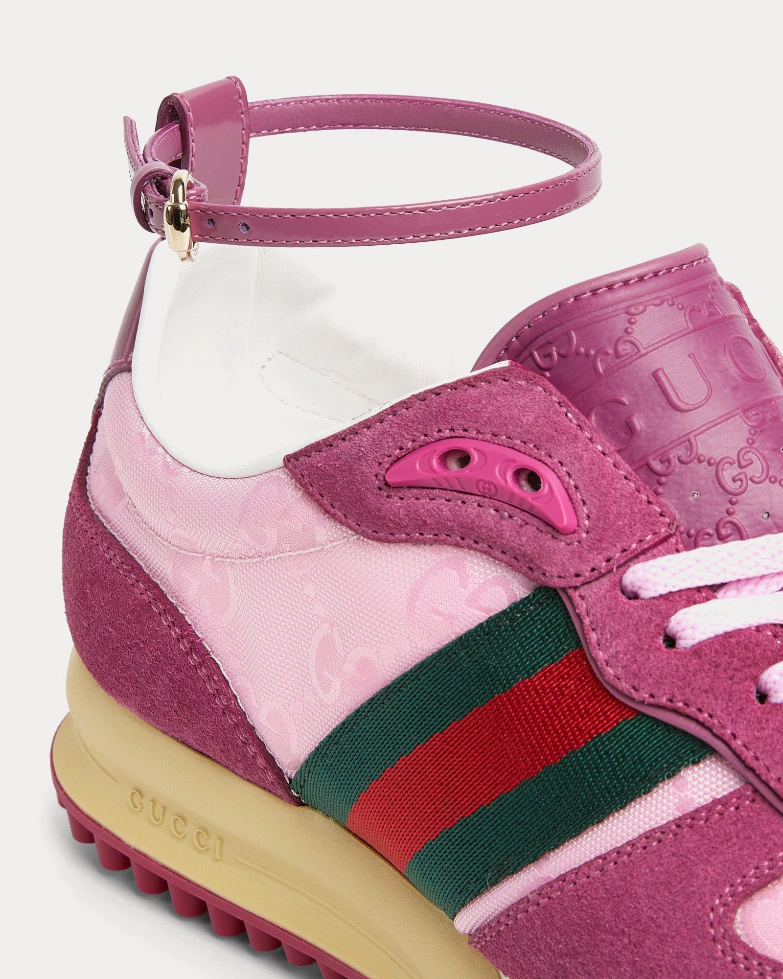 Les baskets basses Gucci Re-Motion pour femme en daim rose allient une esthétique d’inspiration rétro aux codes signature de la maison pour un look à la fois audacieux et raffiné. Confectionnées en Italie, ces baskets sportives arborent un luxueux mélange de daim marron clair et de nylon GG, rehaussé de la bande Web verte et rouge emblématique de Gucci pour une finition incomparable.