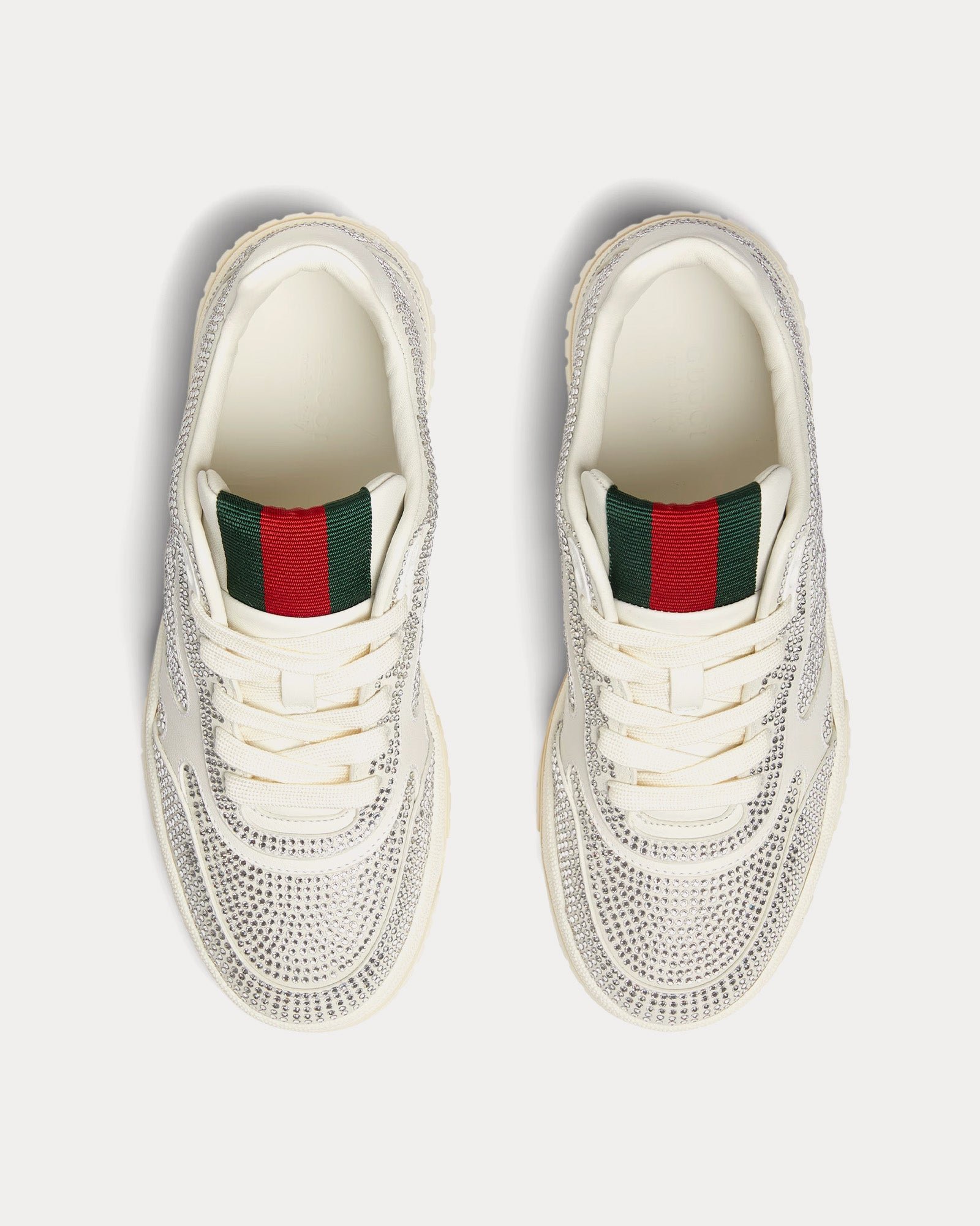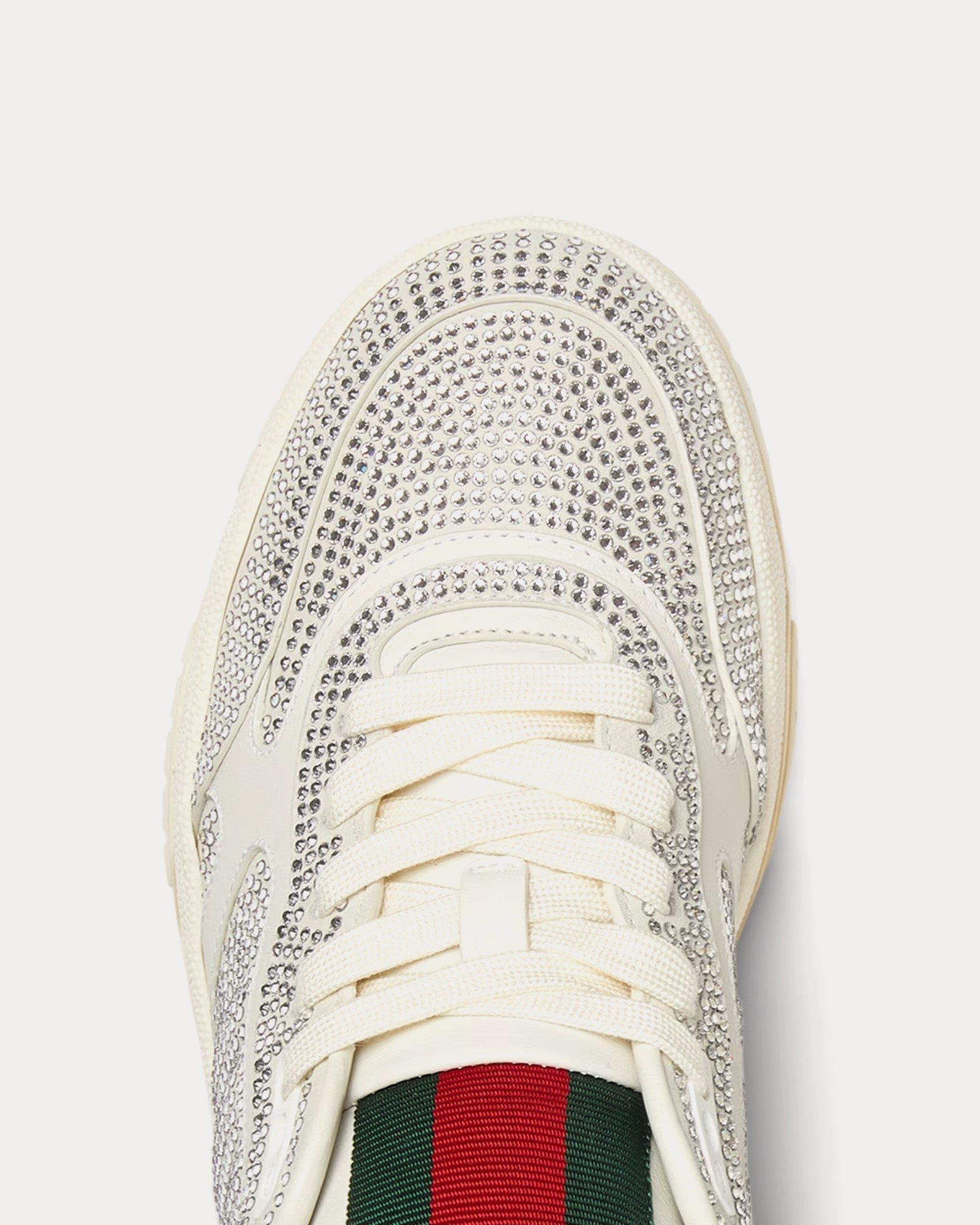 Baskets basses blanches Gucci Re-Web en cuir avec applications de cristaux sur toute la surfaceBaskets basses blanches Gucci Re-Web en cuir avec applications de cristaux sur toute la surface
