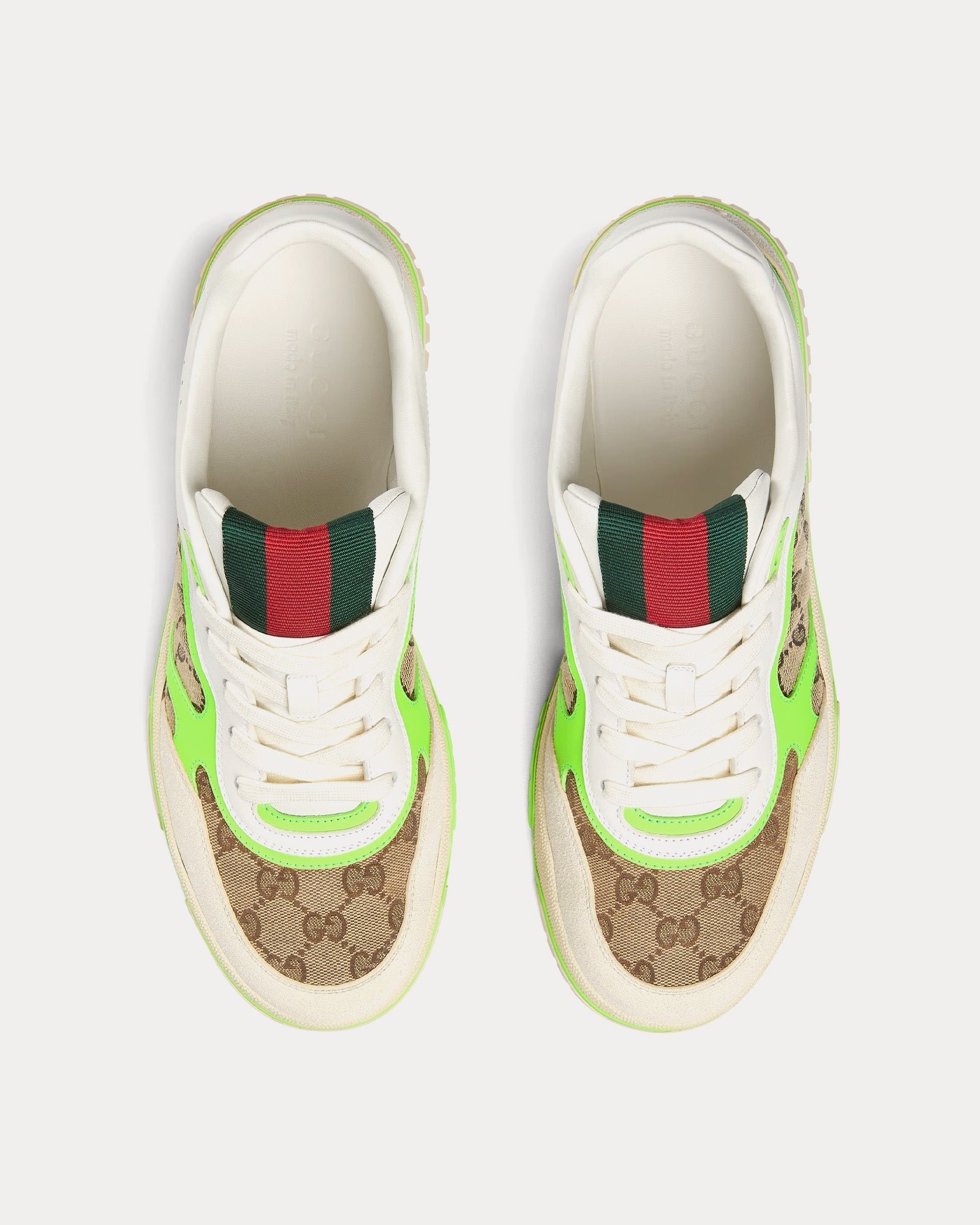 Baskets basses Gucci Re-Web en cuir et toile GG originales blanches/vertes