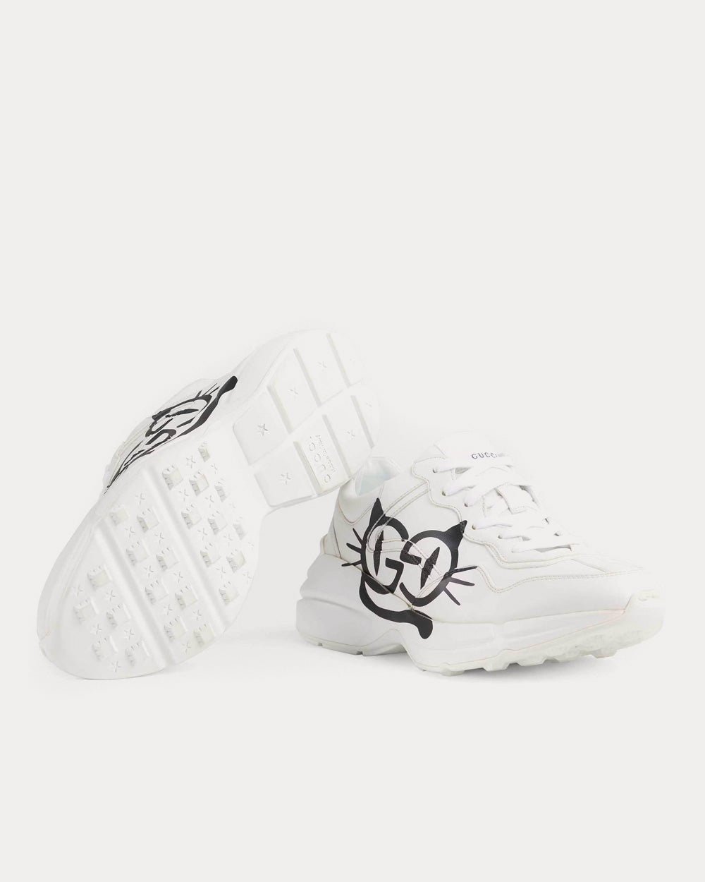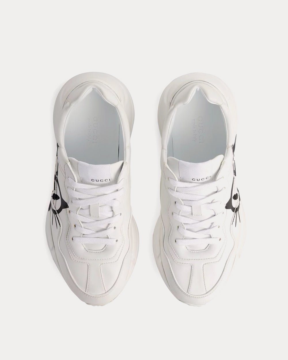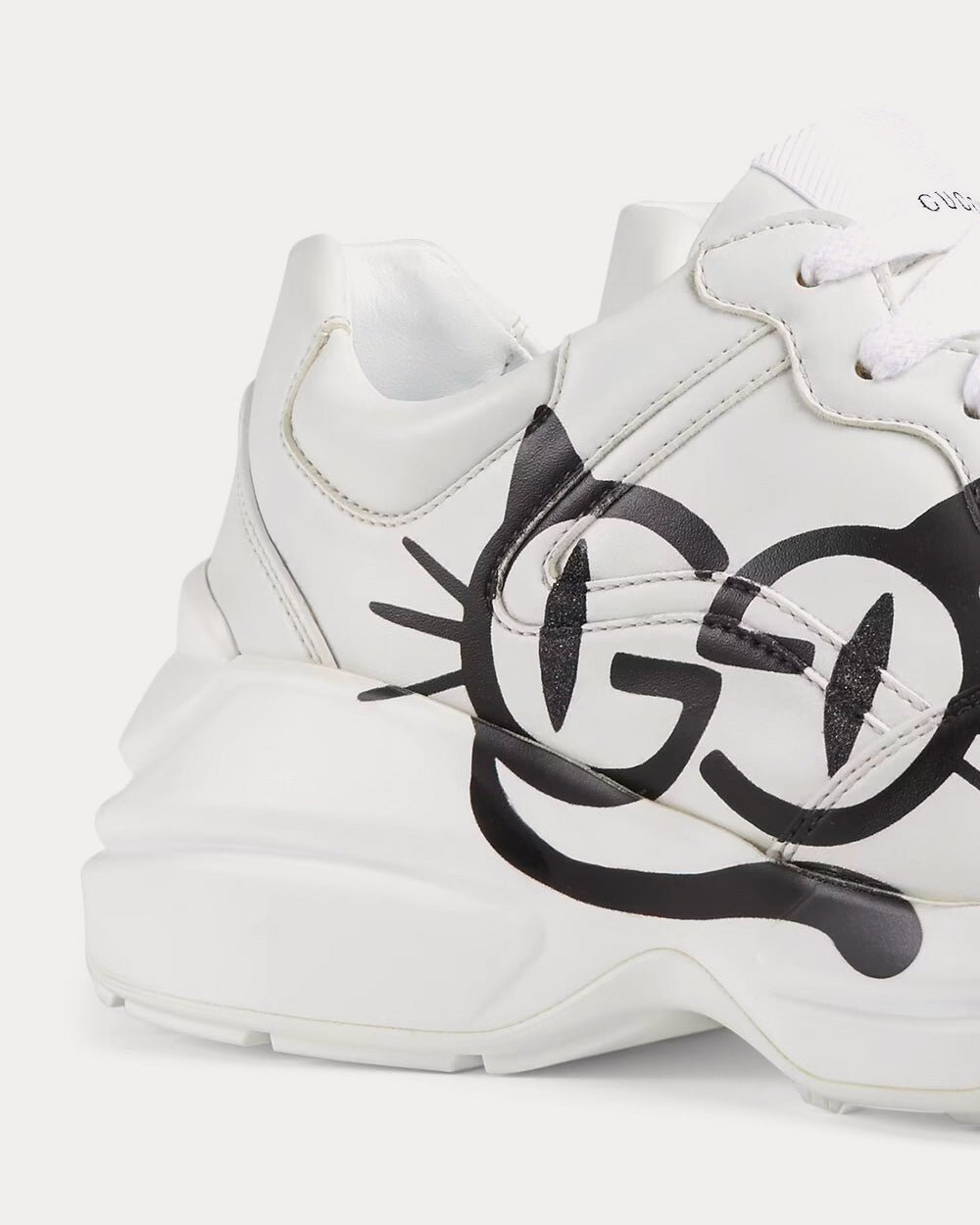 Les félins continuent d’inspirer les créations de la Maison. Apportant une touche ludique à ce thème, la Rhyton est sublimée par un motif œil de chat cartoon. Cette sneaker est principalement confectionnée en Demetra. Fabriqué selon les mêmes procédés de tannage, ce nouveau matériau offre souplesse et résistance, ainsi qu’une finition souple. Ce matériau écologique associe des matières premières d’origine animale, principalement issues de sources durables, renouvelables et biosourcées.