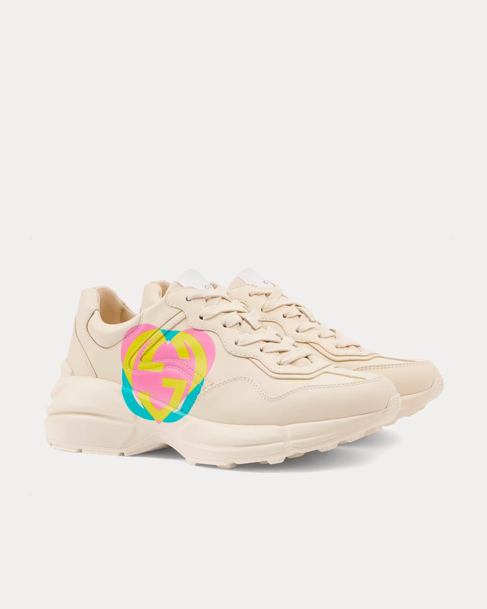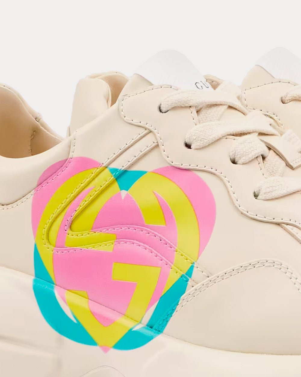 Un cœur coloré et un imprimé G entrelacé évoquent le romantisme qui imprègne la collection. Mettant en avant le logo de la Maison dans une interprétation contemporaine d’un symbole d’archive, ce motif définit cette paire de baskets Rhyton.