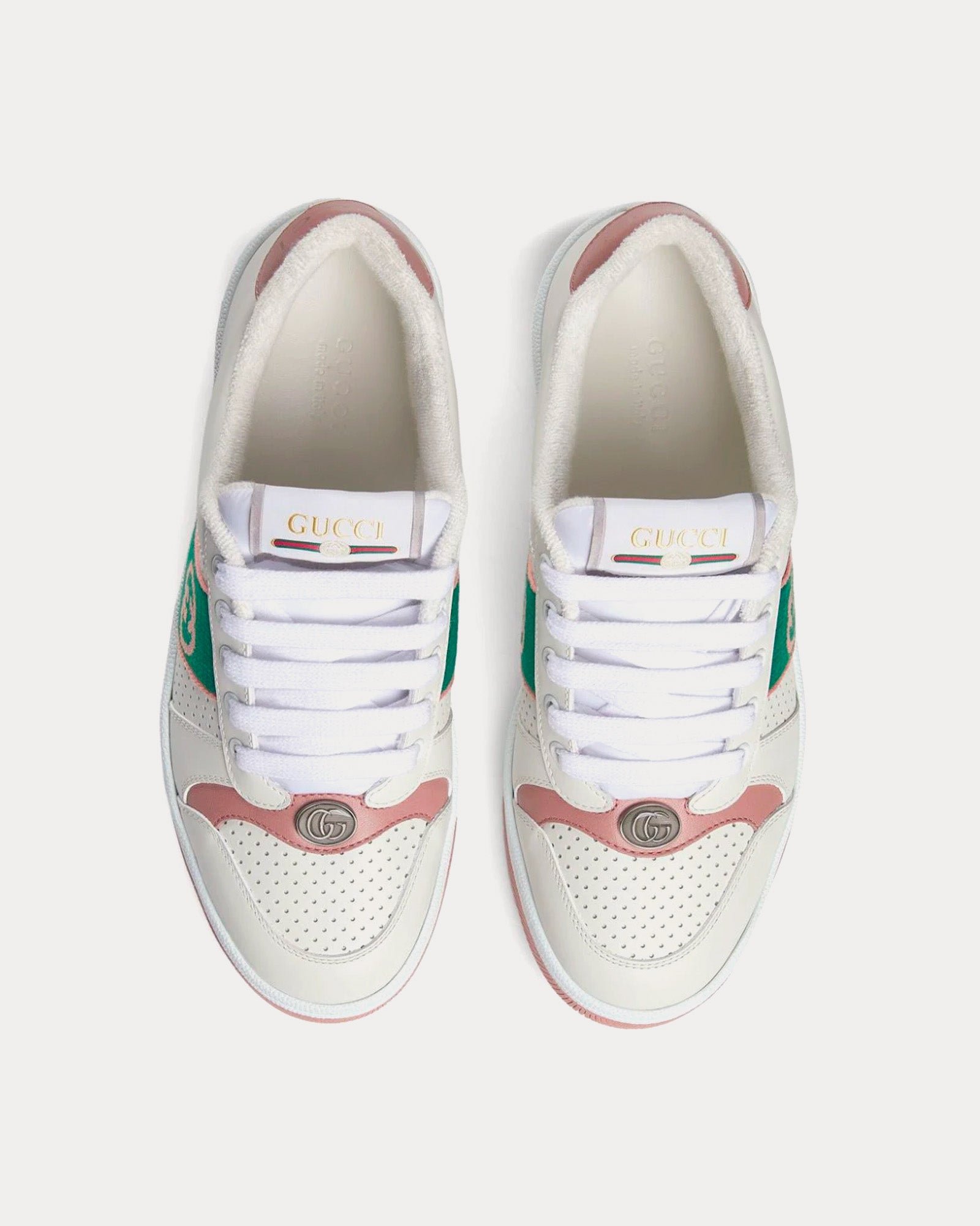 Baskets basses Gucci Screener avec G entrelacés blanc/rose/vert vif
