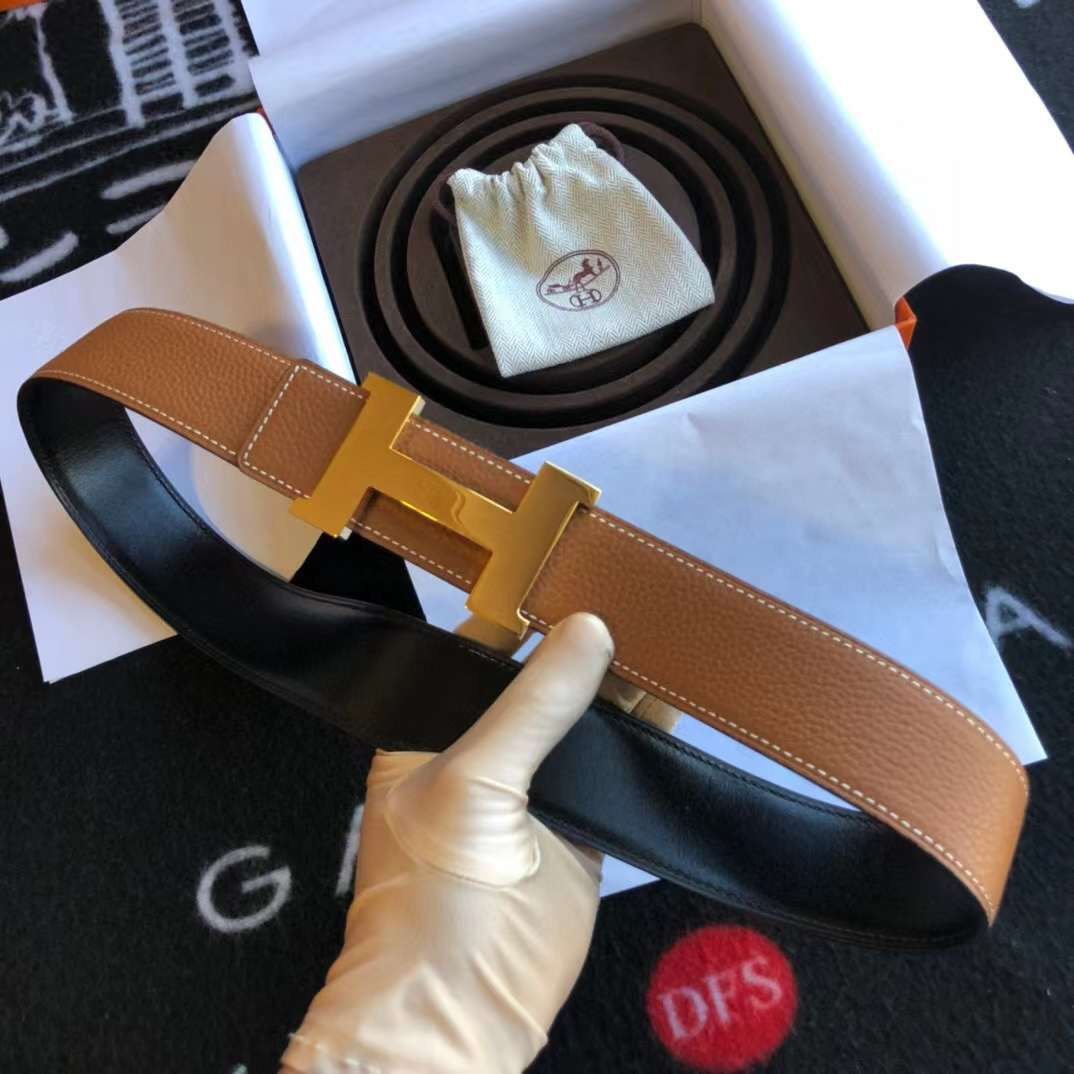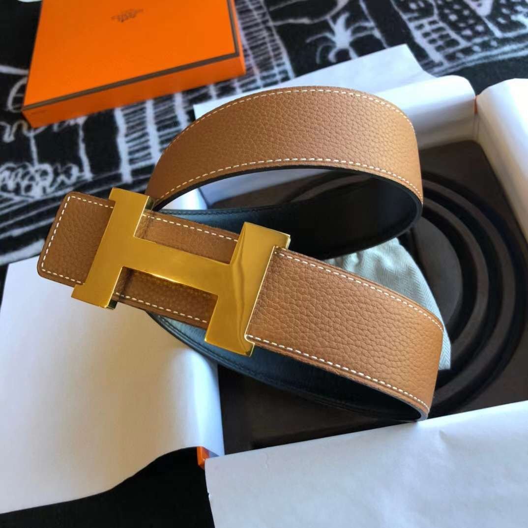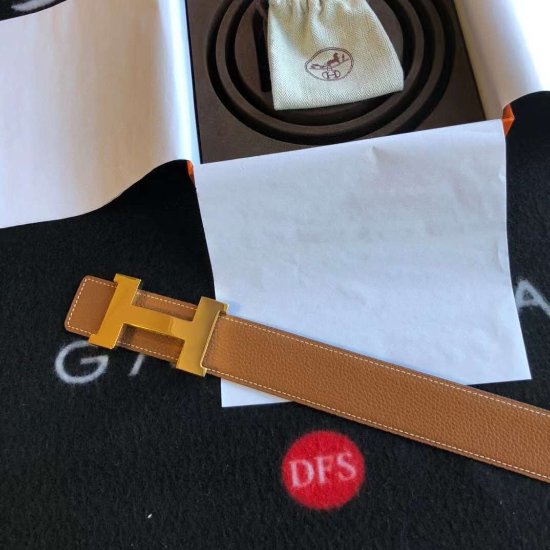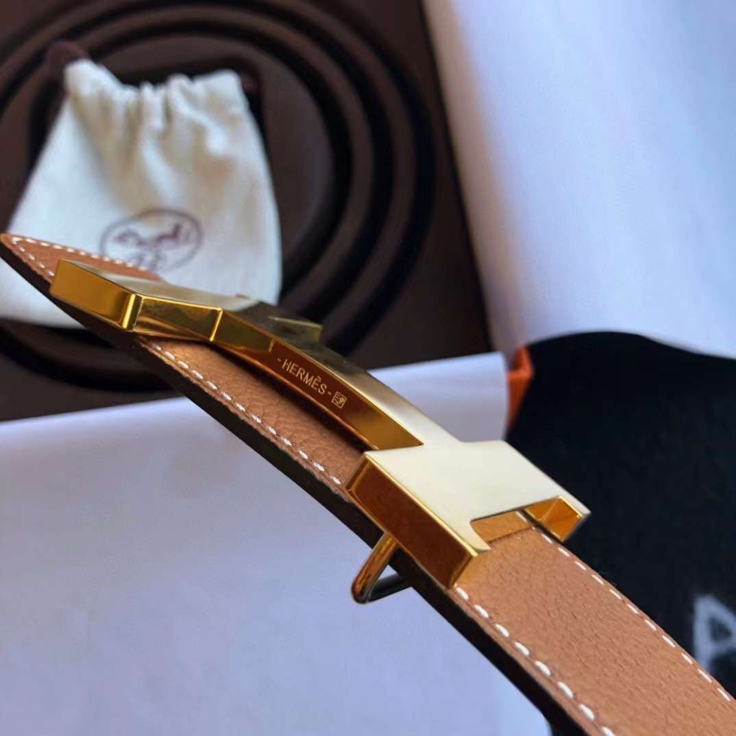 HERMES || Ceinture à boucle Constance en cuir marron