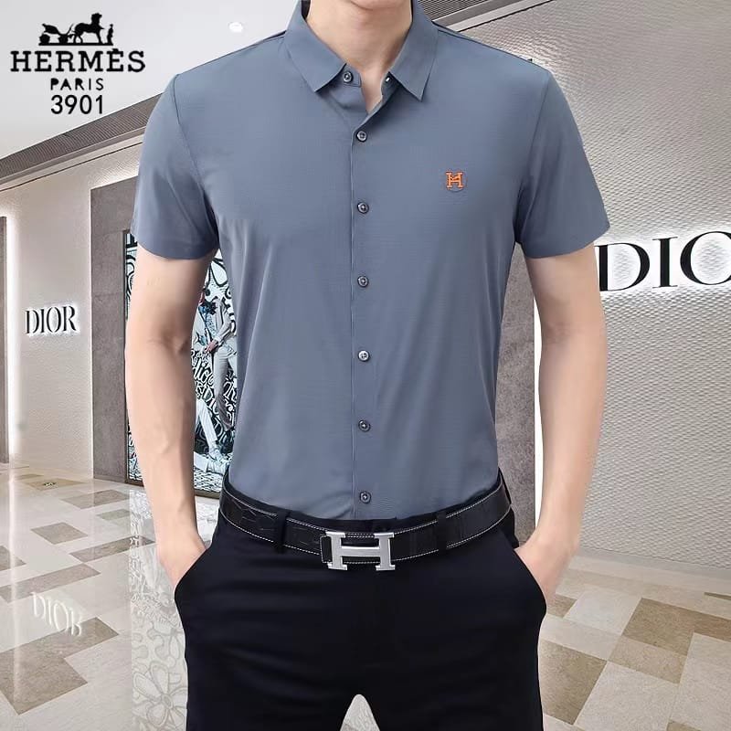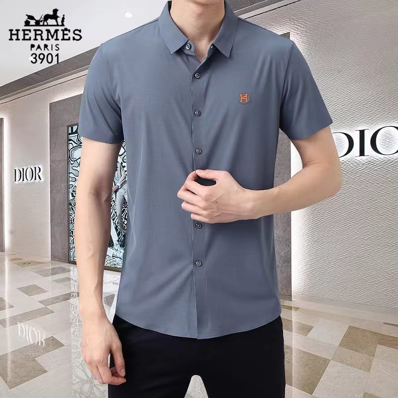 HERMES || Chemise coupe classique avec logo brodé pour homme