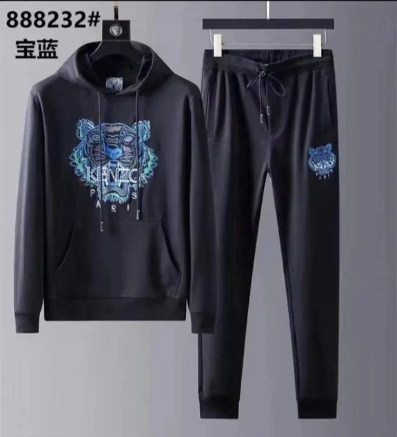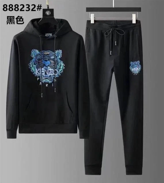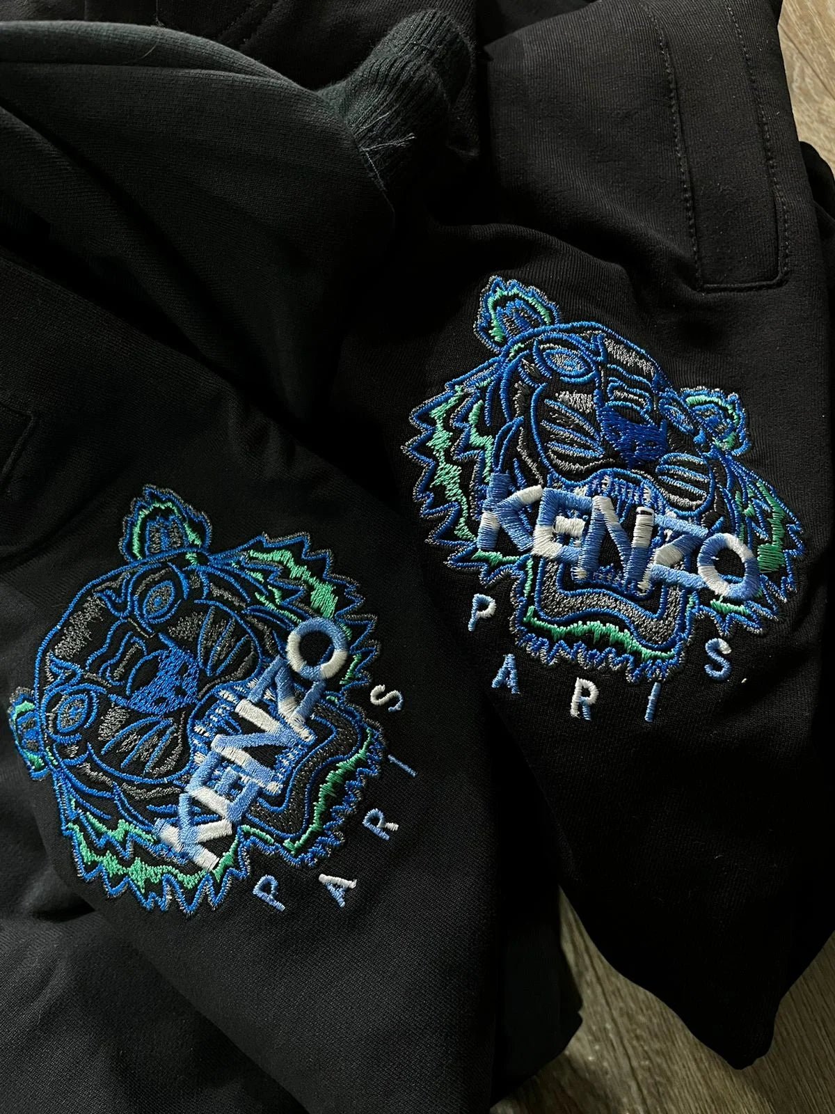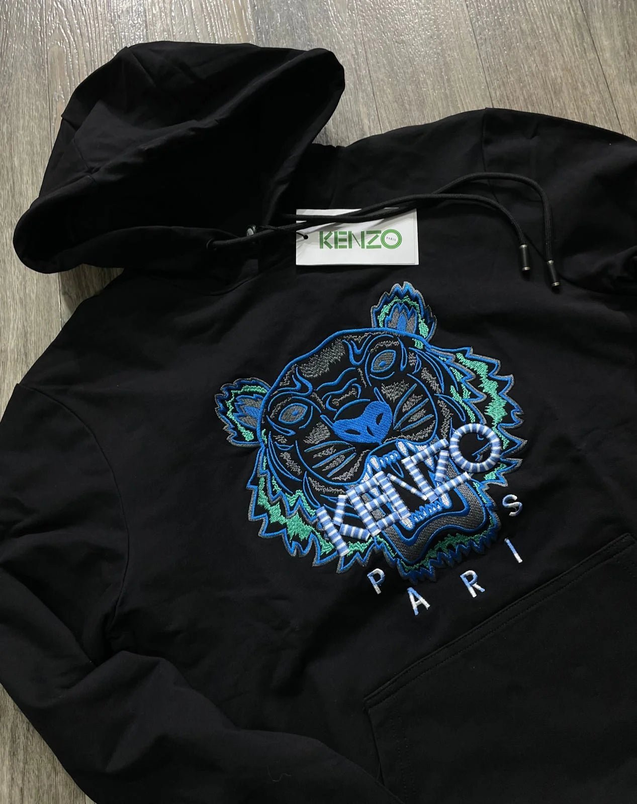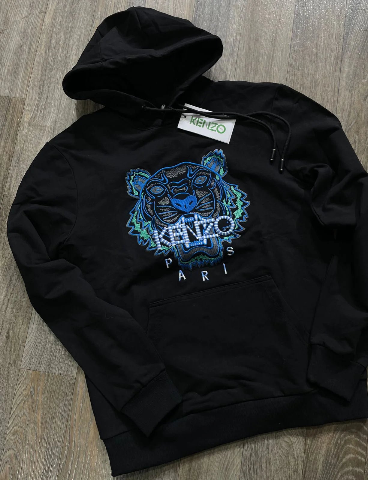 KENZO || Survêtement à capuche motif tigre embossé noir/bleu/blancKENZO || Survêtement à capuche motif tigre embossé noir/bleu/blanc