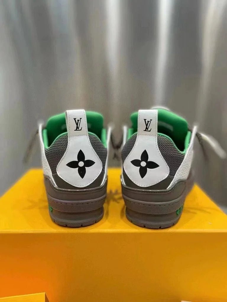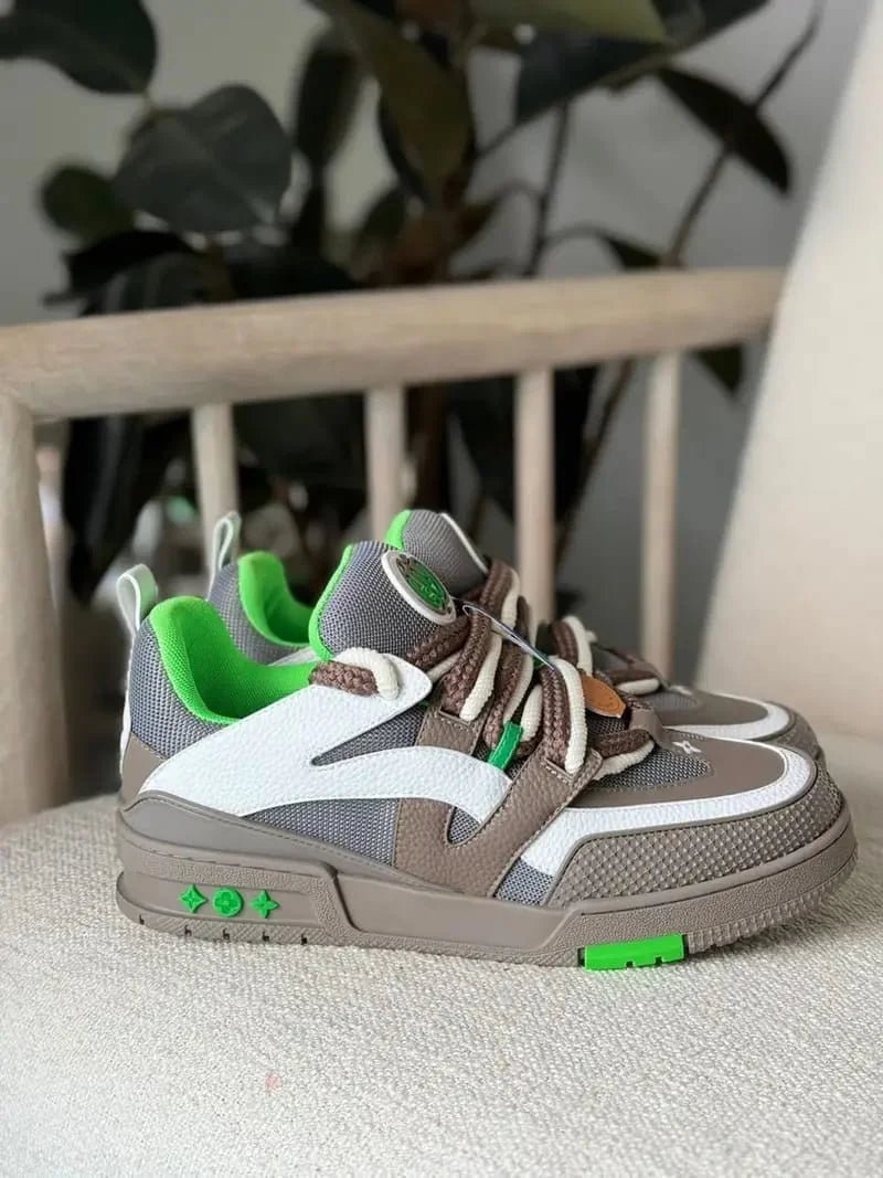 LOUIS VUITTON || Baskets de skate bicolores à double lacets LV Gris/Vert
