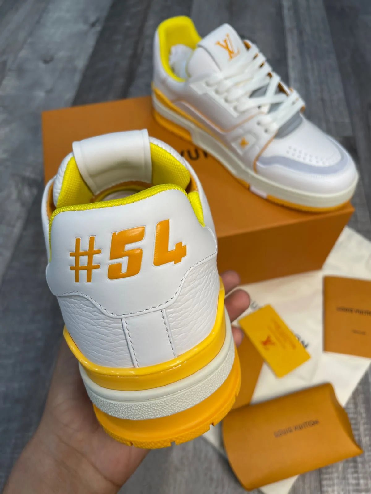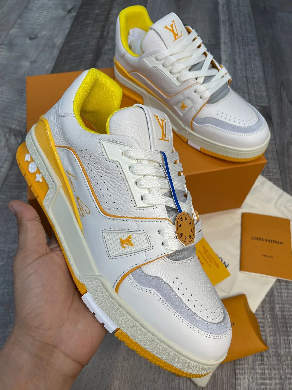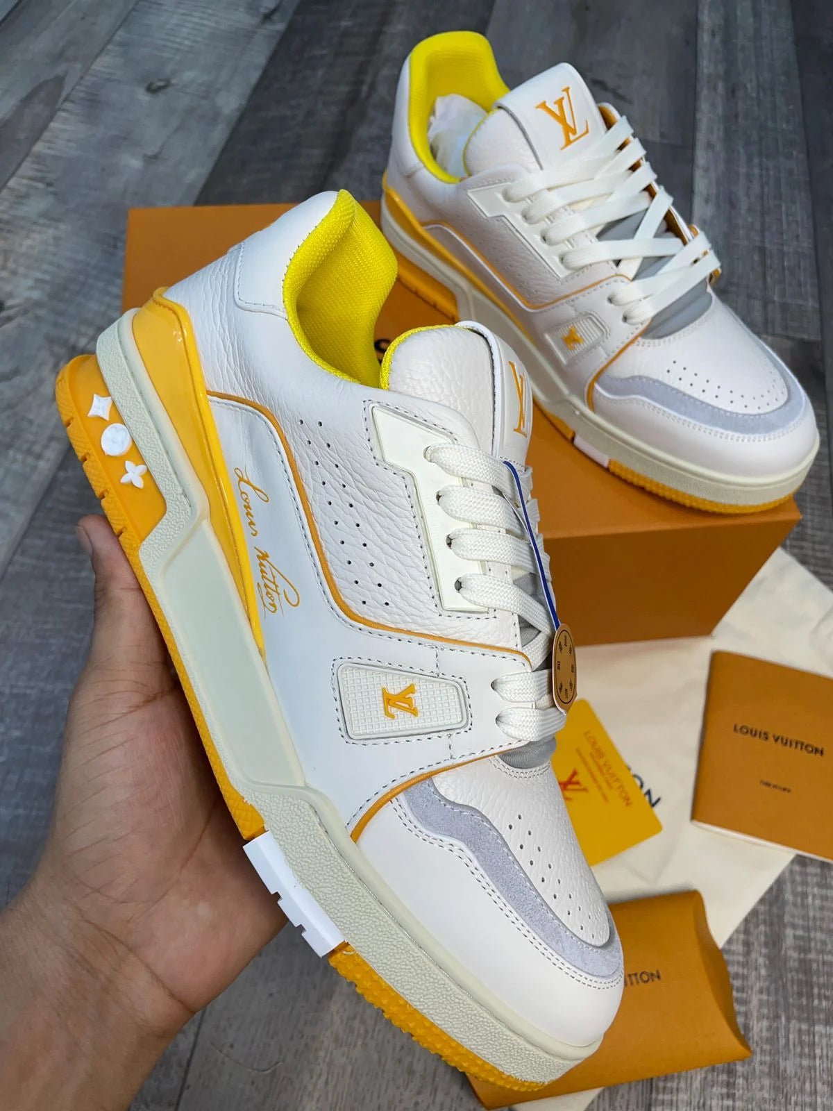 Découvrez le style et le confort avec la sneaker LV Trainer Maxi Jaune de LOUIS VUITTON. Confectionnée avec des matériaux haut de gamme; cette sneaker arbore un design jaune élégant et l’emblématique monogramme LV. Dotées d’une semelle résistante et amortie; ces baskets sont parfaites pour les personnes avant-gardistes en quête d’une touche de luxe. Sublimez votre garde-robe avec la sneaker LV Trainer Maxi Jaune.