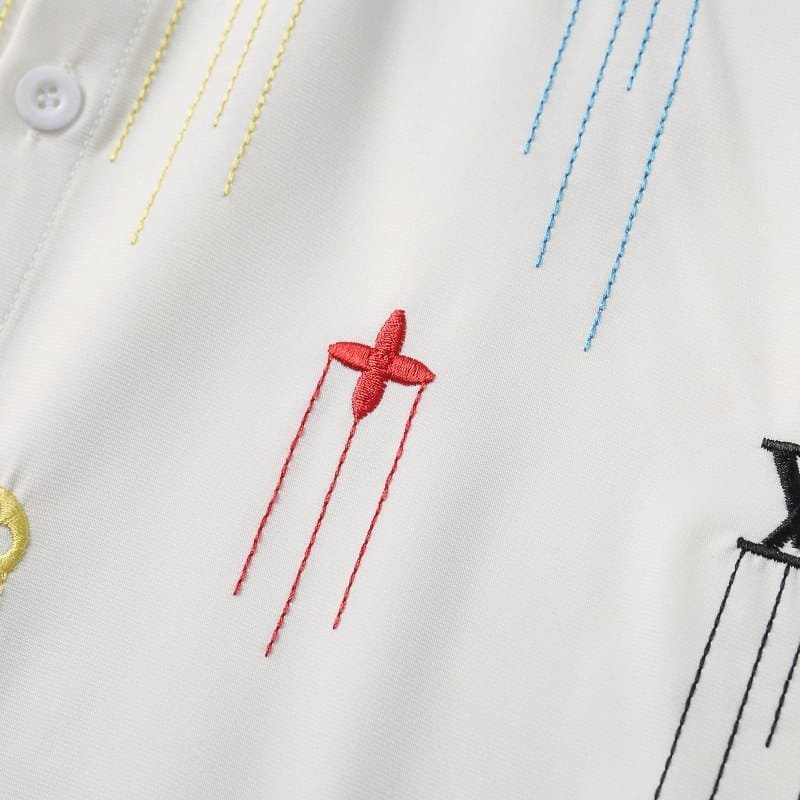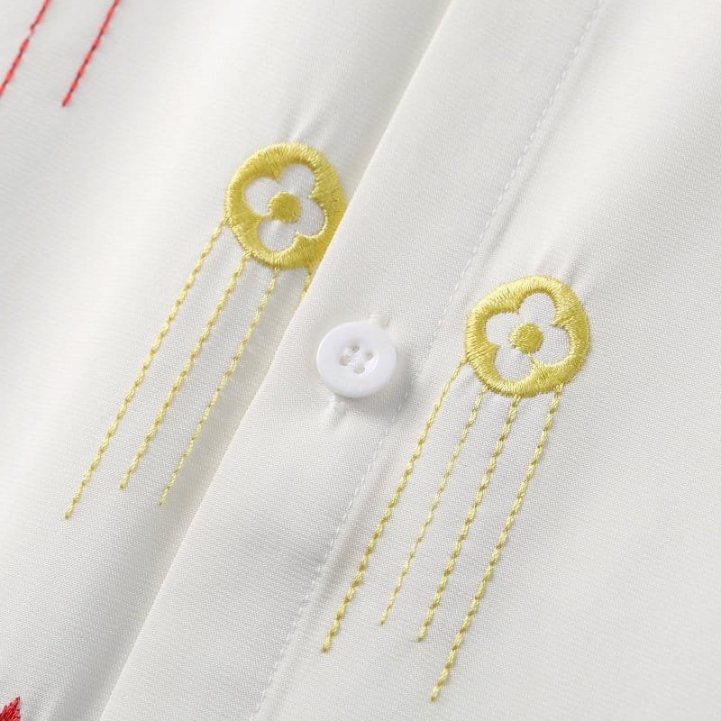 LOUIS VUITTON || Chemise col V, logo brodé, motif imprimé / BLANC