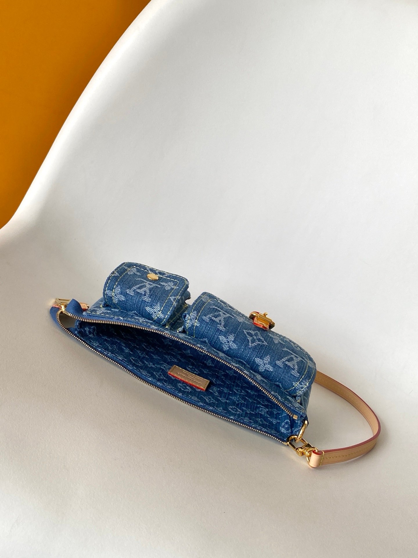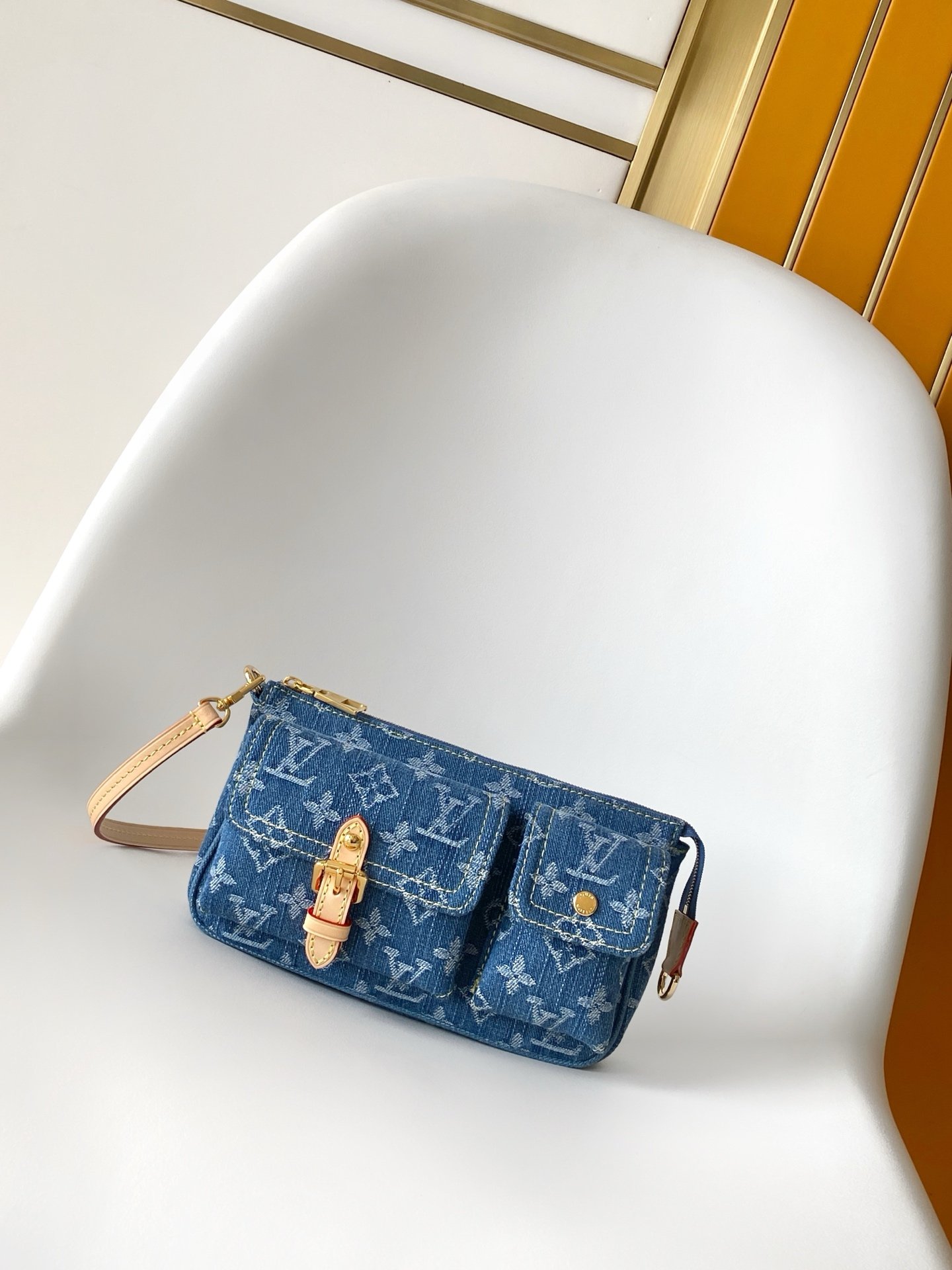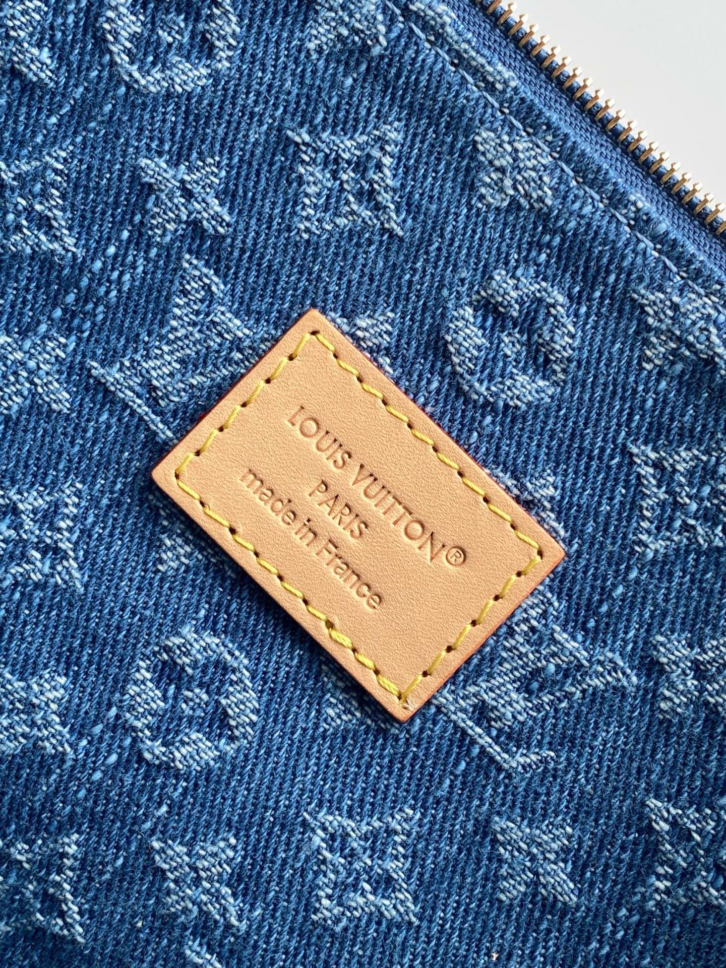 Cette réédition contemporaine en denim bleu associe l’allure urbaine au savoir-faire de Louis Vuitton. Conçue en coton certifié GOTS, elle se distingue par ses poches cargo fonctionnelles et son motif Monogram iconique. Un accessoire chic et décontracté, parfait pour un style quotidien affirmé.
