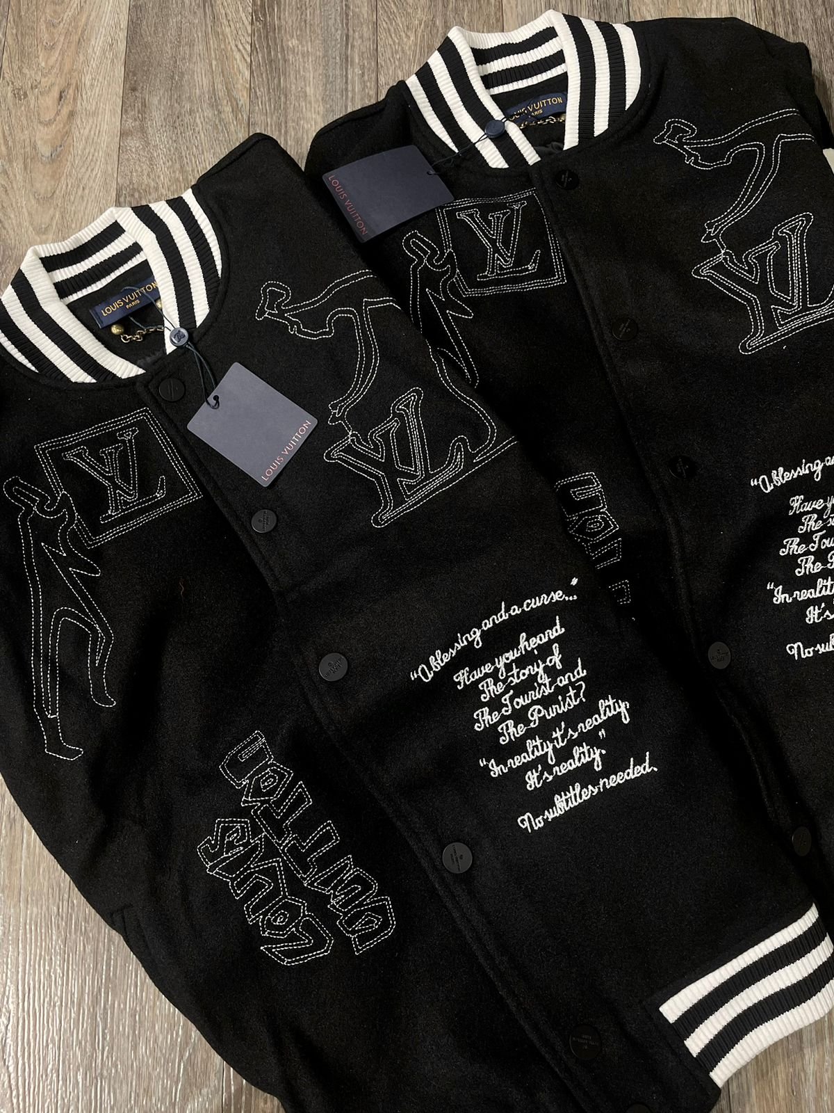 LOUIS VUITTON || Veste universitaire en cuir et laine Forever
