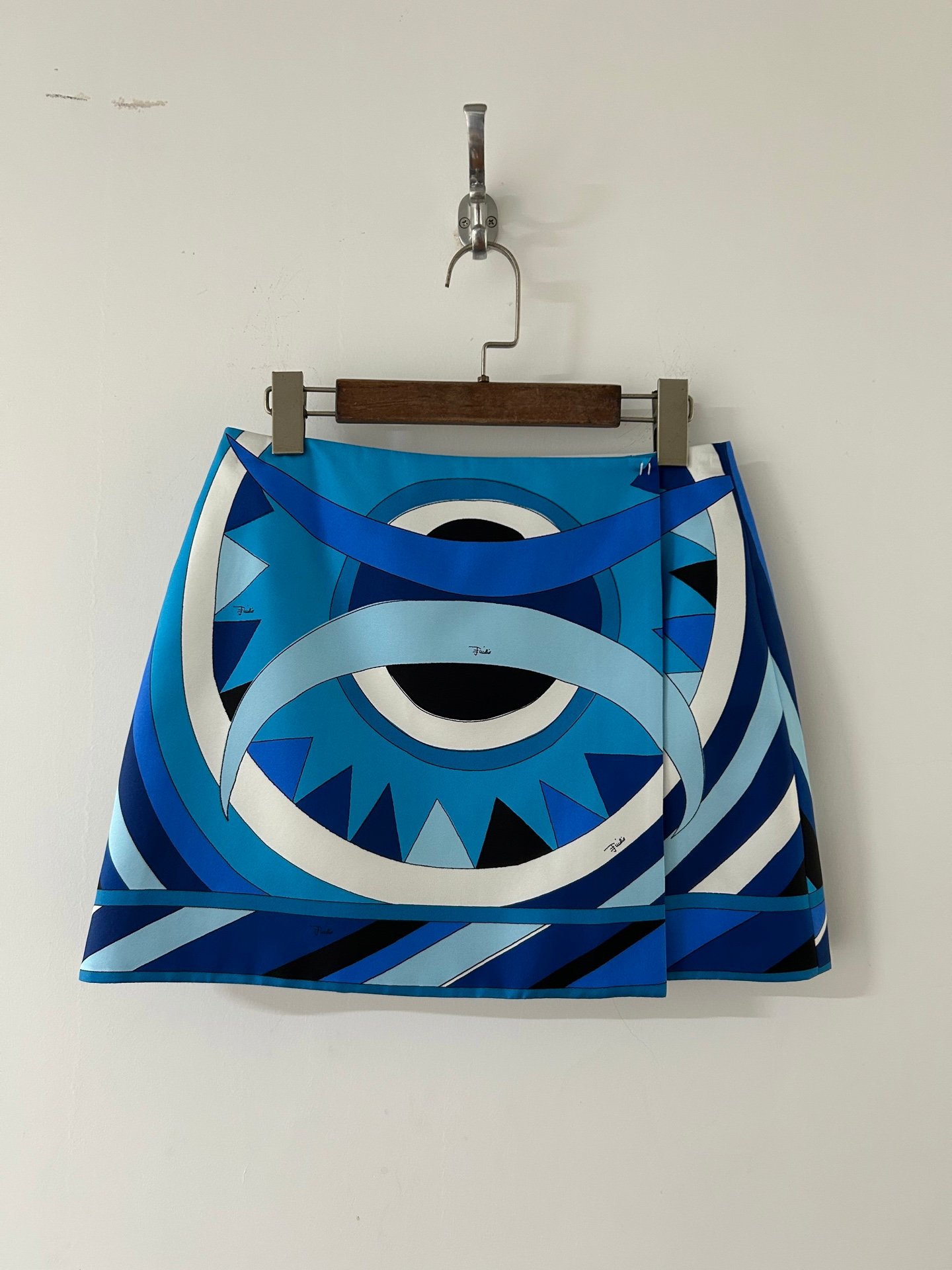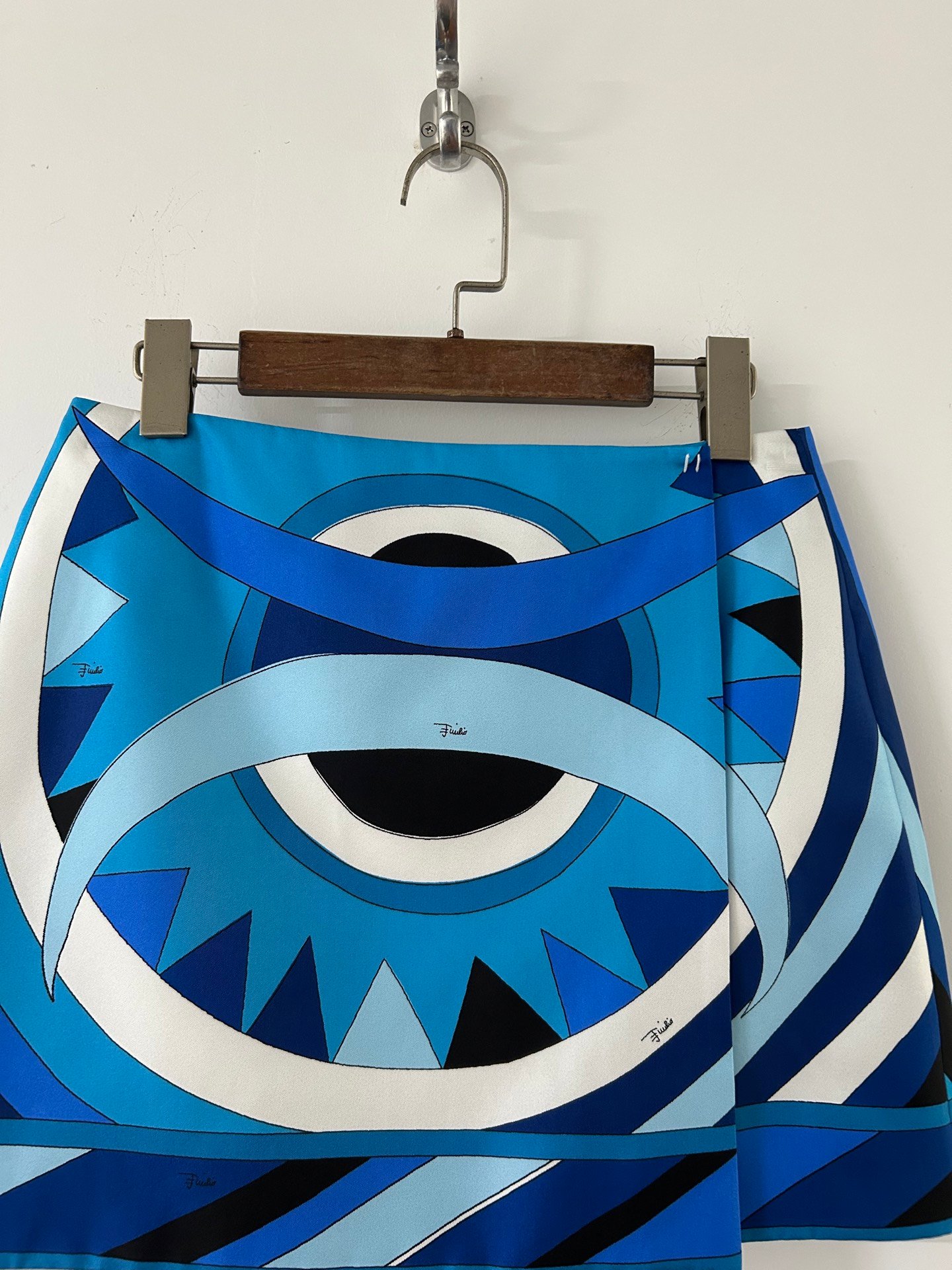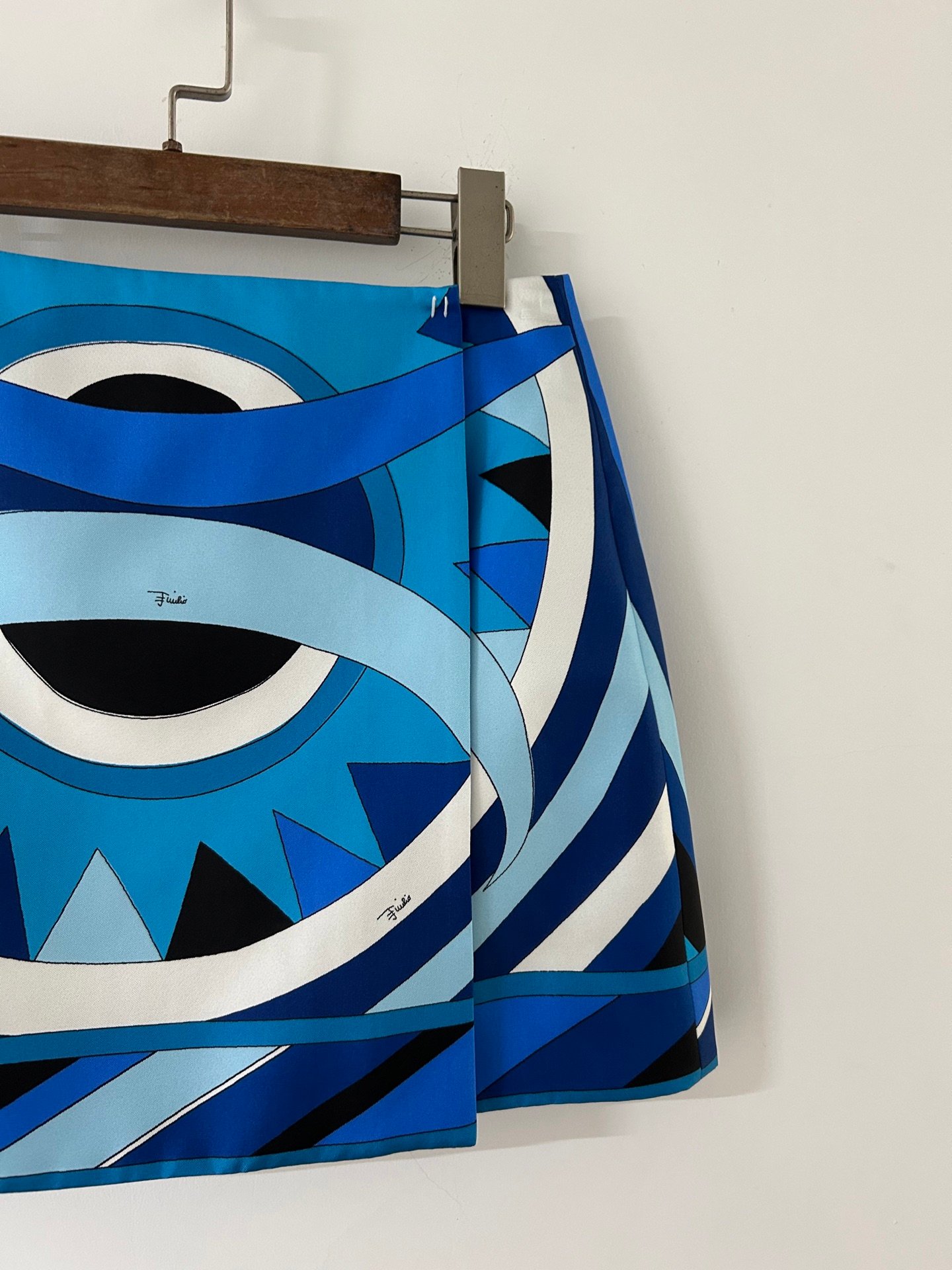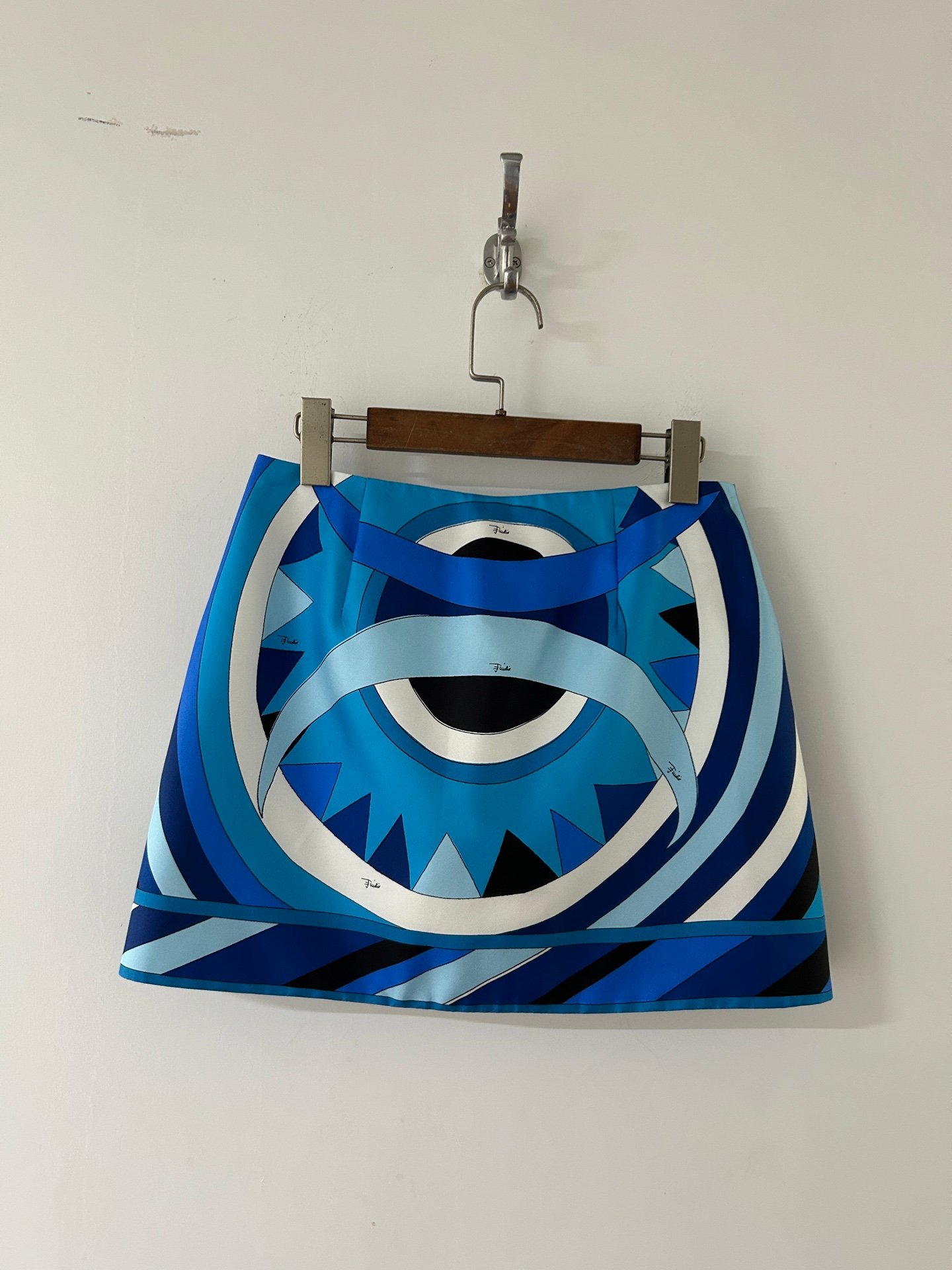 Minijupe en soie Emilio Pucci imprimée Vivara, au motif graphique iconique et aux couleurs éclatantes. Une pièce luxueuse et tendance, parfaite pour sublimer votre style avec élégance.