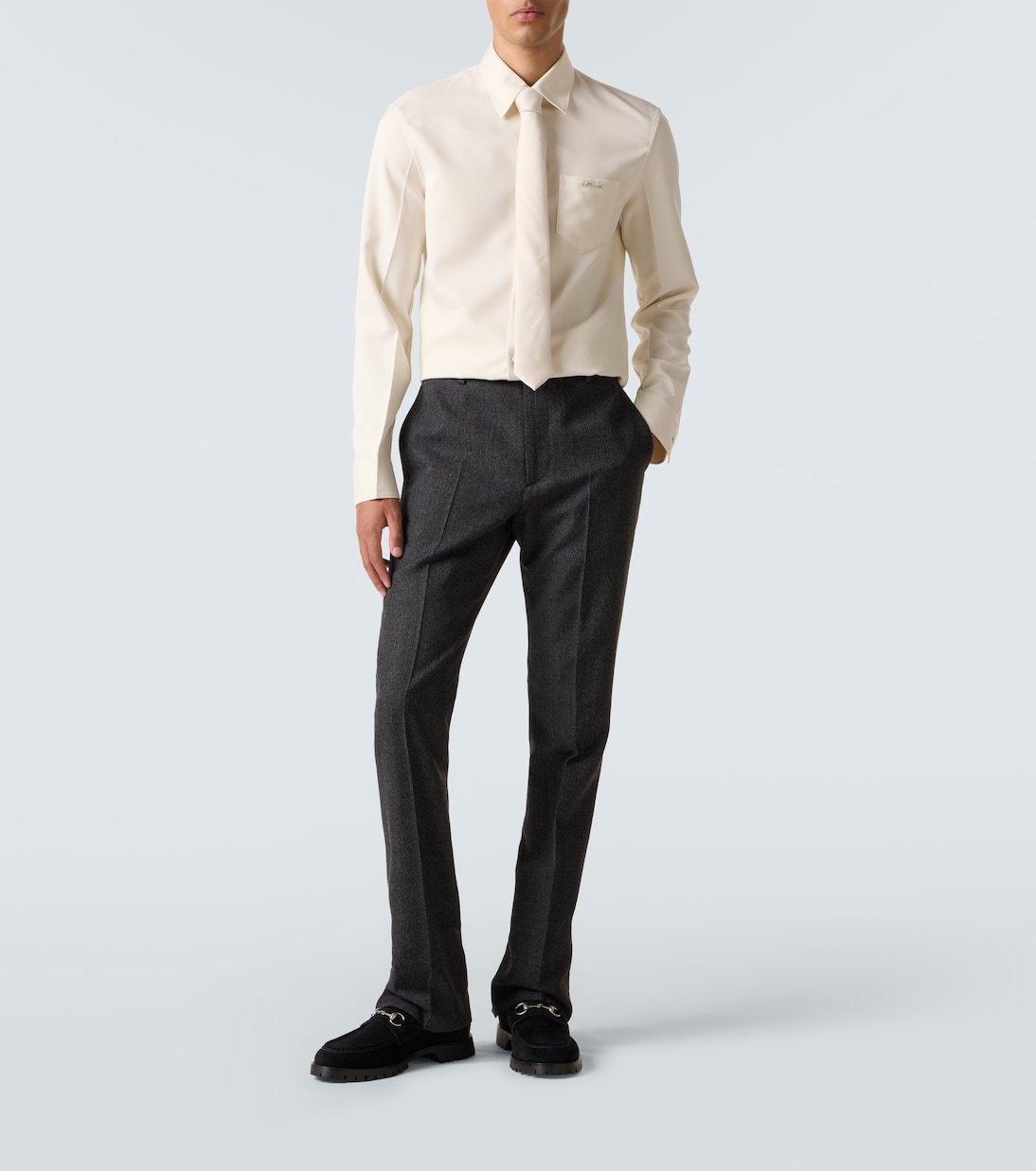 Réalisés en Italie à partir de daim, ces mocassins à semelles crantées sont rehaussés de finitions métalliques argentées emblématiques. Le mors Horsebit, l’un des emblèmes phares de Gucci, rappelle la fascination historique de la maison pour les codes du design équestre.