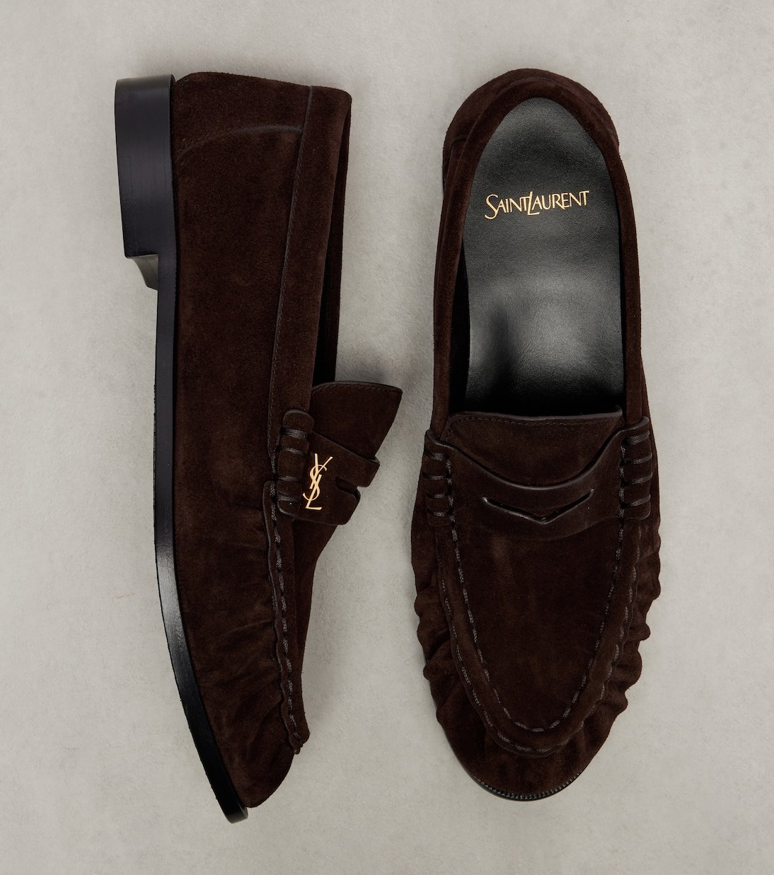 Élégants et discrets, les mocassins Le Loafer sont réalisés en daim et arborent des petits détails métalliques Cassandre sur l’empeigne. Le monogramme YSL, l’un des symboles les plus célèbres de la mode, se compose des initiales entremêlées du fondateur de Saint Laurent.
