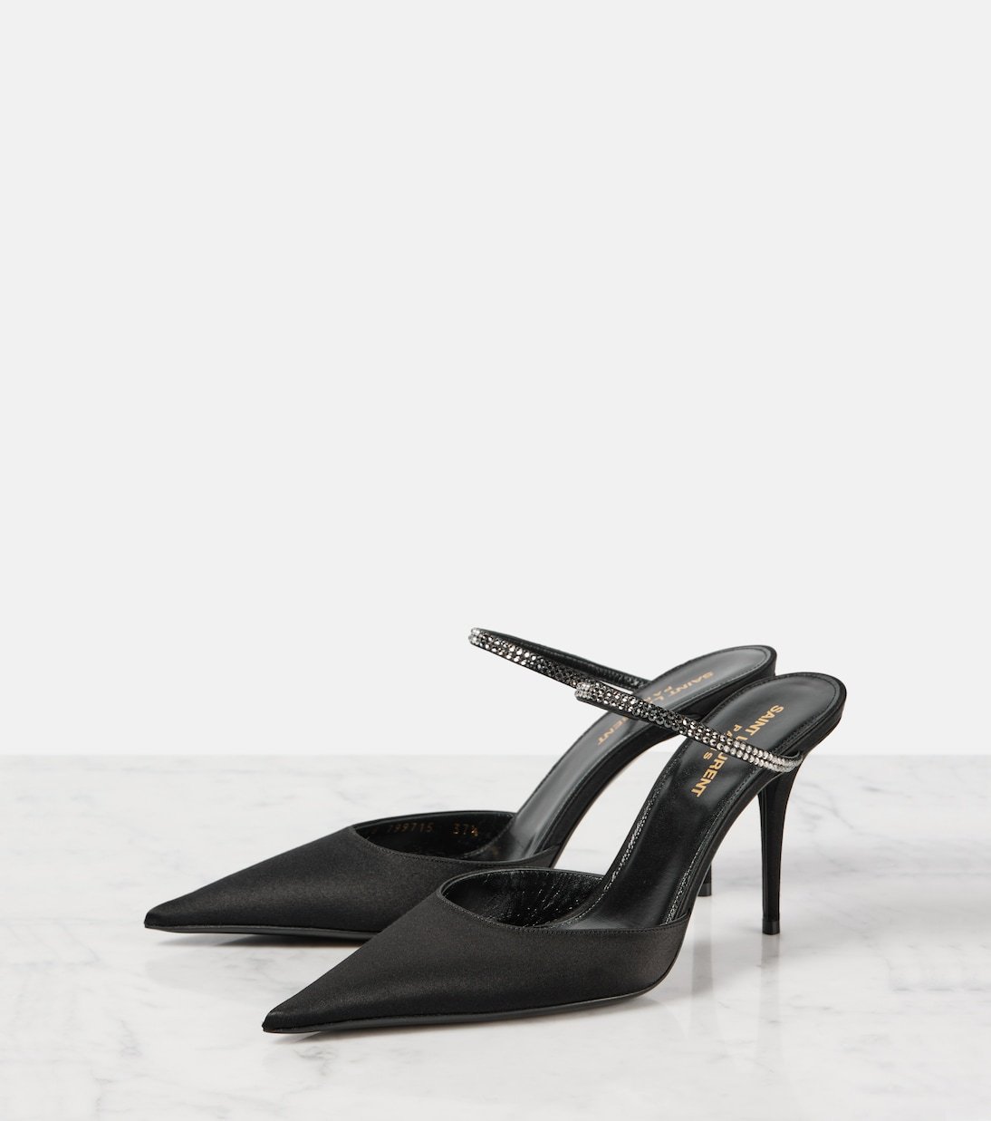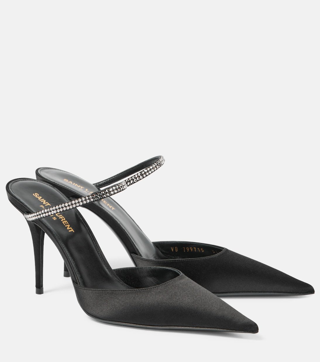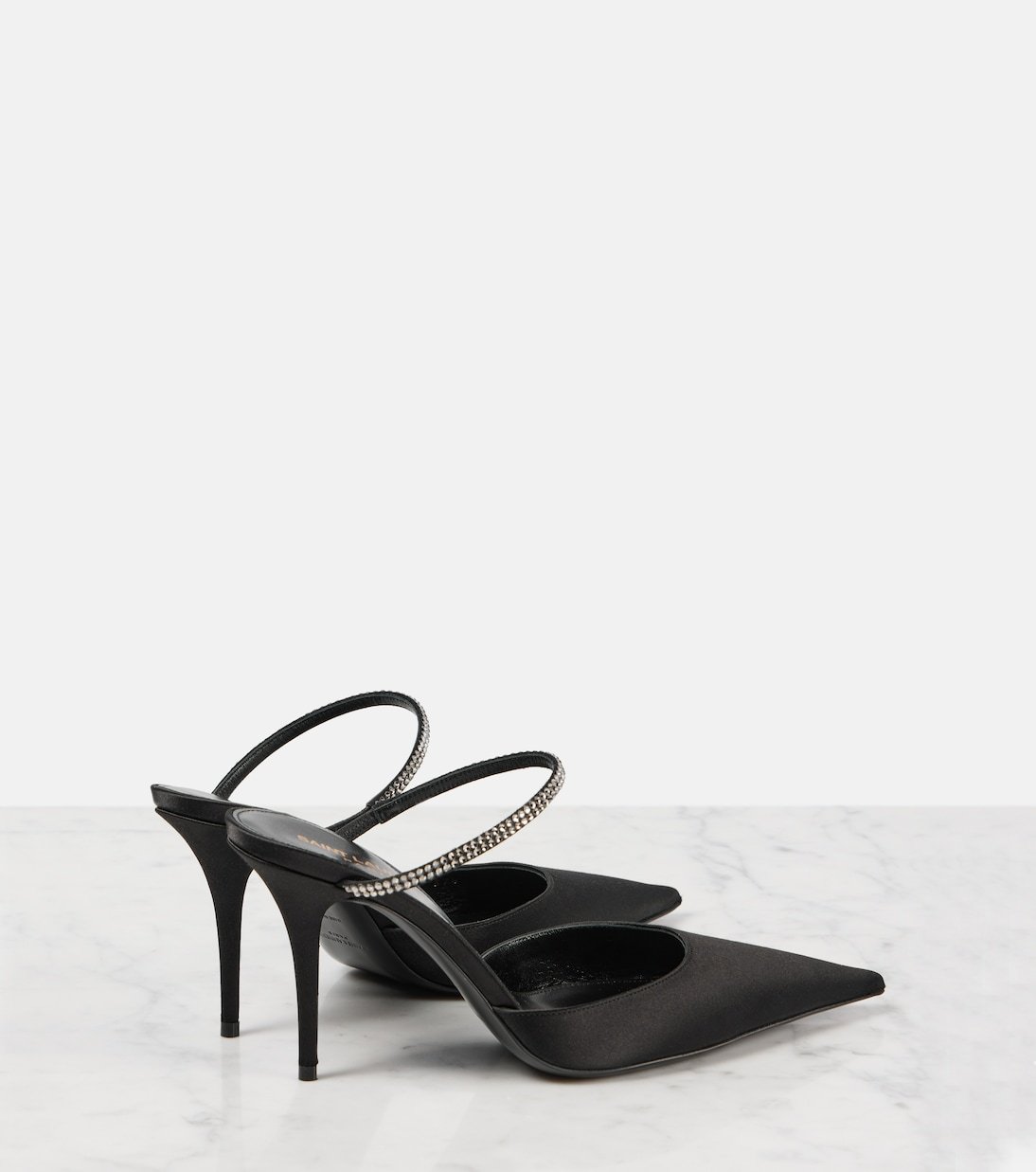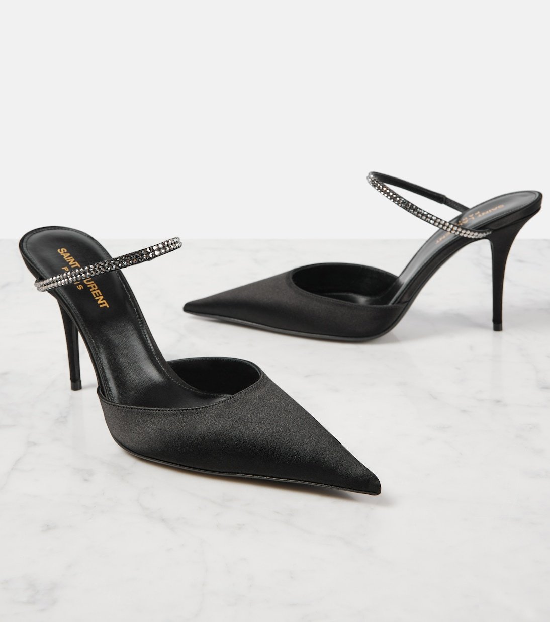 Mules Barbara 90 en satin à ornements