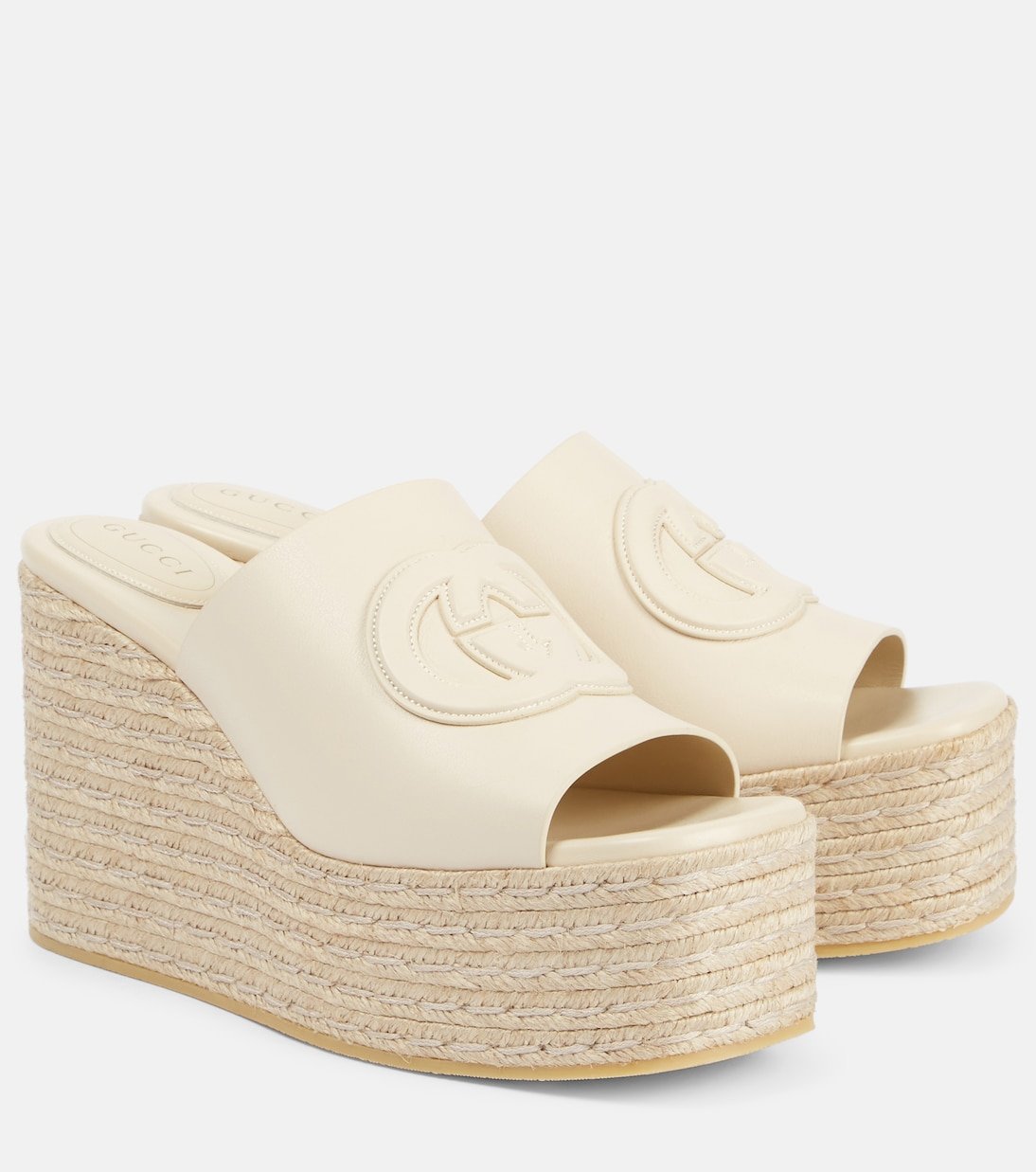 Les mules GG à plateforme de la collection Croisière 2025 de Gucci incarnent un style estival des plus élégants. Ce modèle est confectionné en cuir et arbore l’emblématique logo Interlocking G du label.