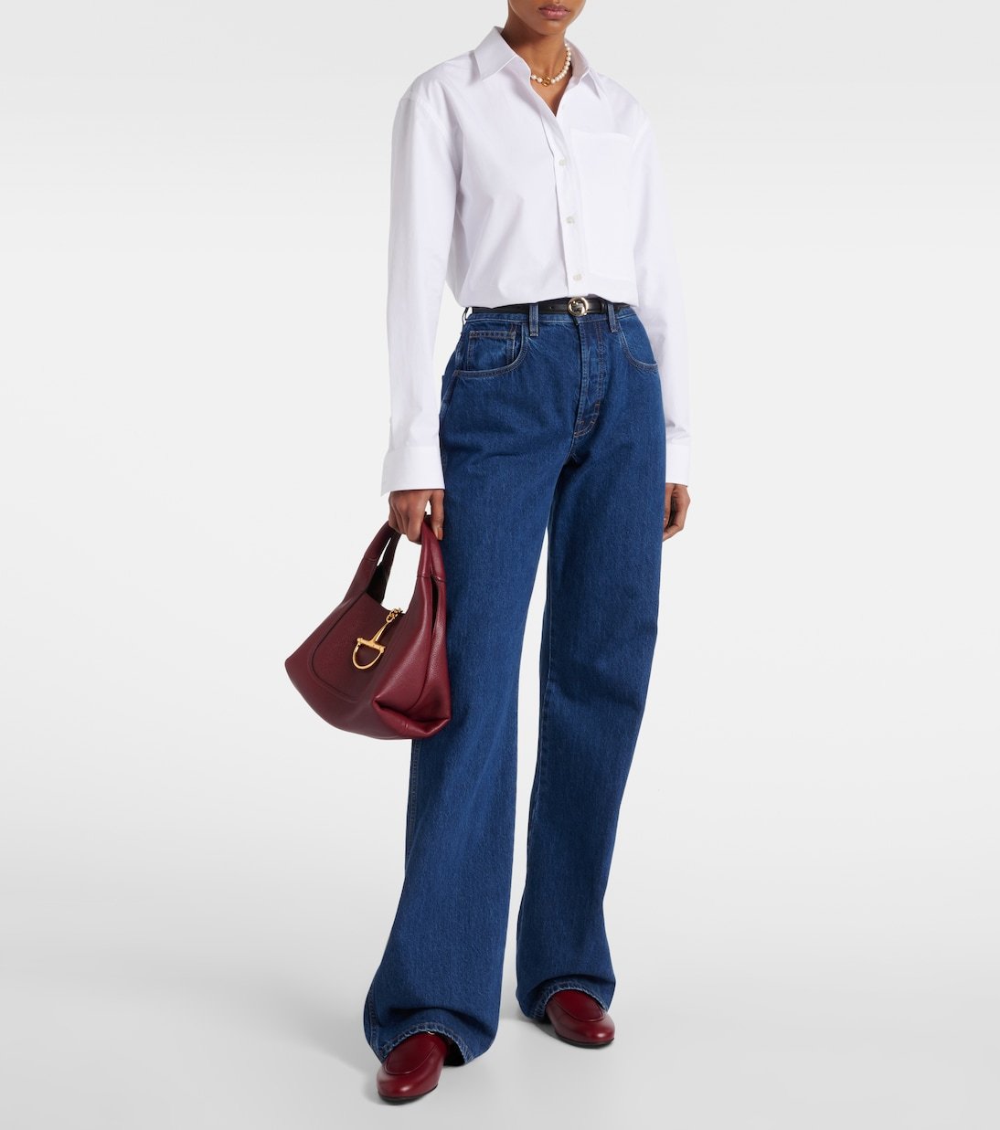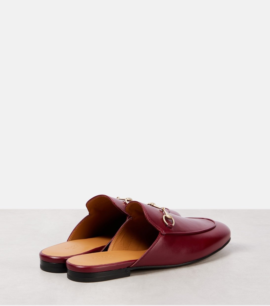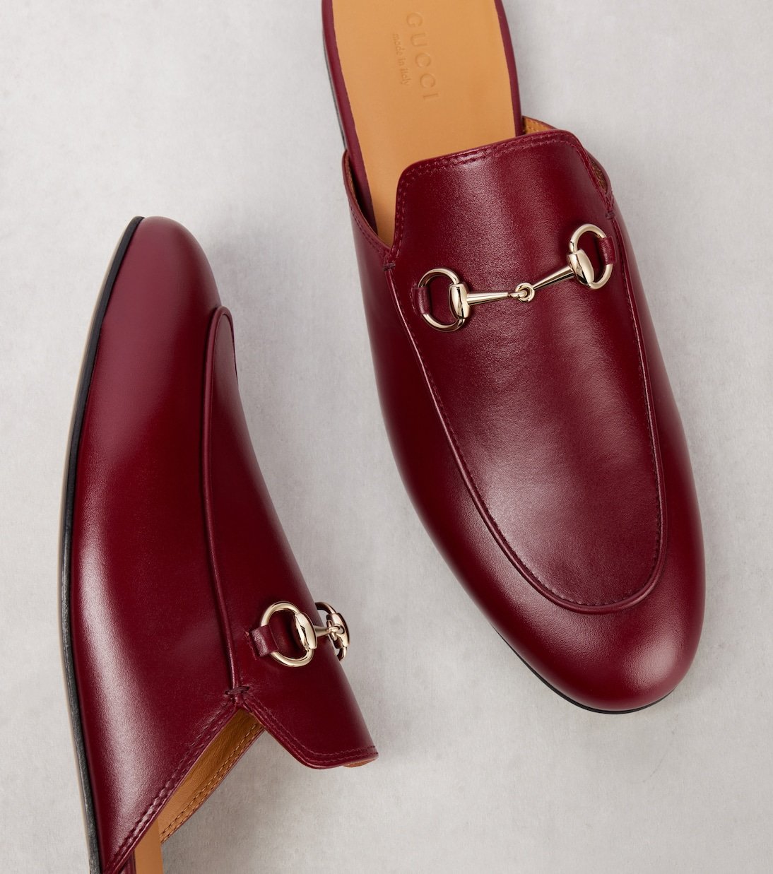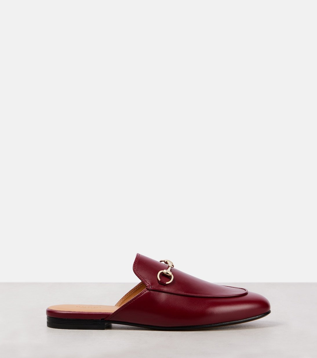 Le mors Horsebit, l’un des emblèmes phares de Gucci, rappelle la fascination historique de la maison pour les codes du design équestre. Le motif emblématique de la maison occupe une place de choix sur les mules Princetown, confectionnées avec savoir-faire en cuir lisse.