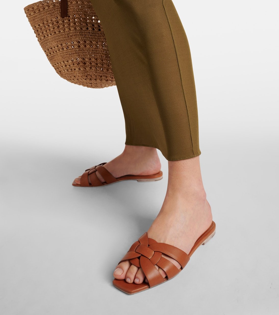 Plates et dotées d’un bout carré ouvert, les mules Tribute de Saint Laurent seront parfaites pour la saison estivale. Leurs brides en cuir camel s’entrecroisent pour former un motif graphique et le tout complétera à merveille une tenue minimaliste.