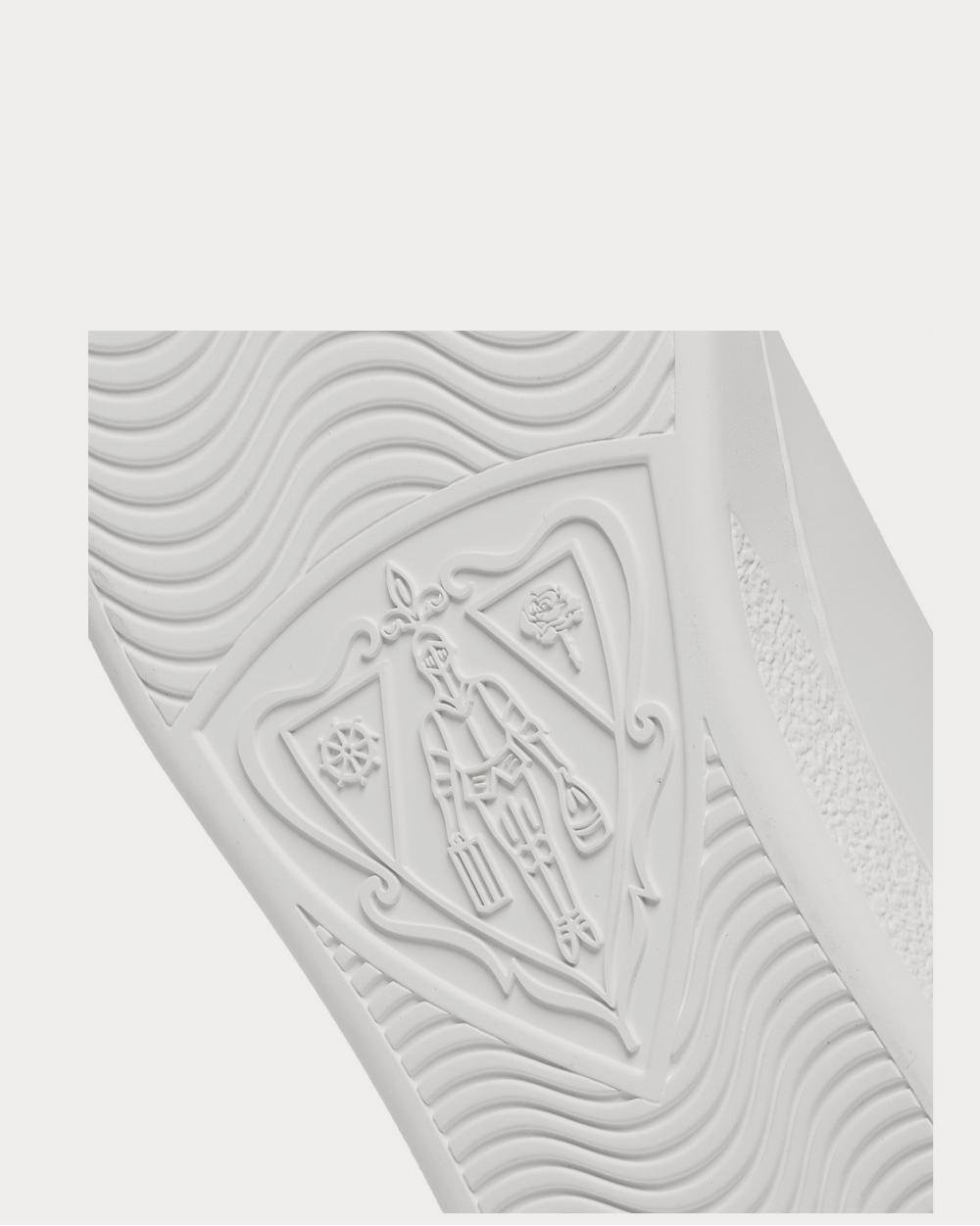 Inspirées des tennis traditionnelles, les baskets Gucci sont une version plus épurée des modèles « Ace » précédents. Confectionnées en cuir blanc lisse, elles sont dépourvues de tout logo visible, à l’exception des côtés perforés en forme de monogramme « GG » entrelacés de la maison italienne.