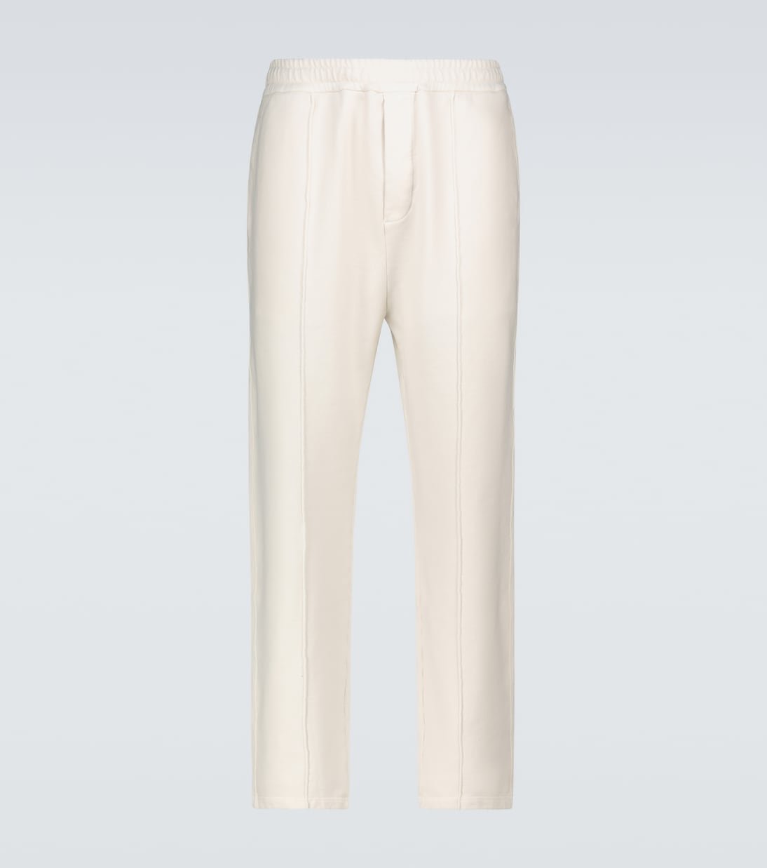 Ce pantalon de survêtement Prada, qui arbore un esprit à la fois sportif et formel, est fabriqué en jersey de coton épais. Il possède un coloris beige naturel et une coupe slim avec une taille élastiquée.